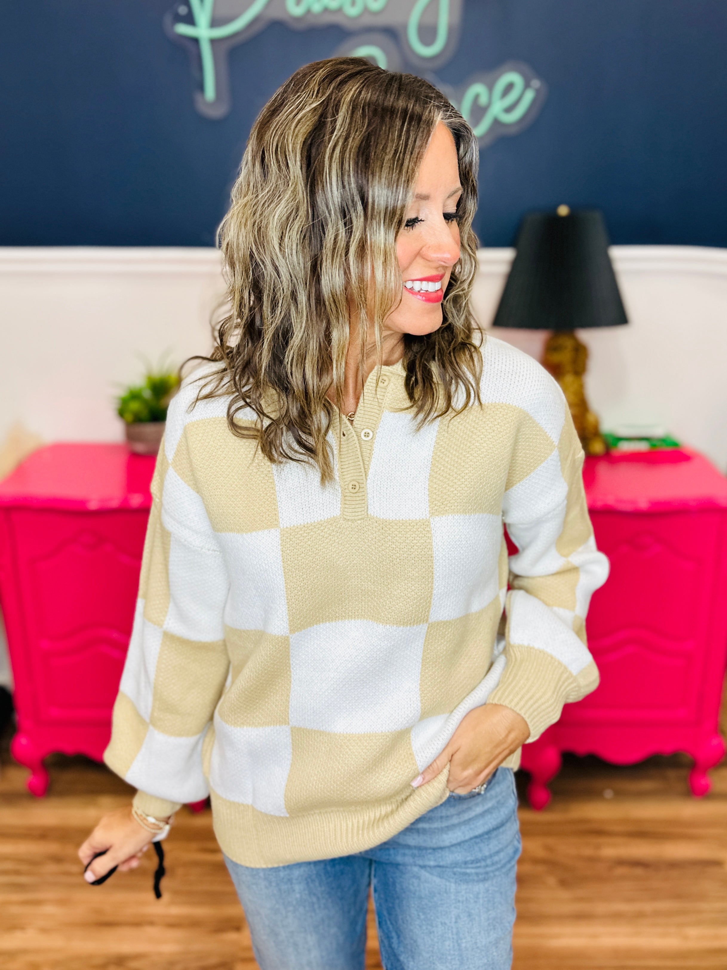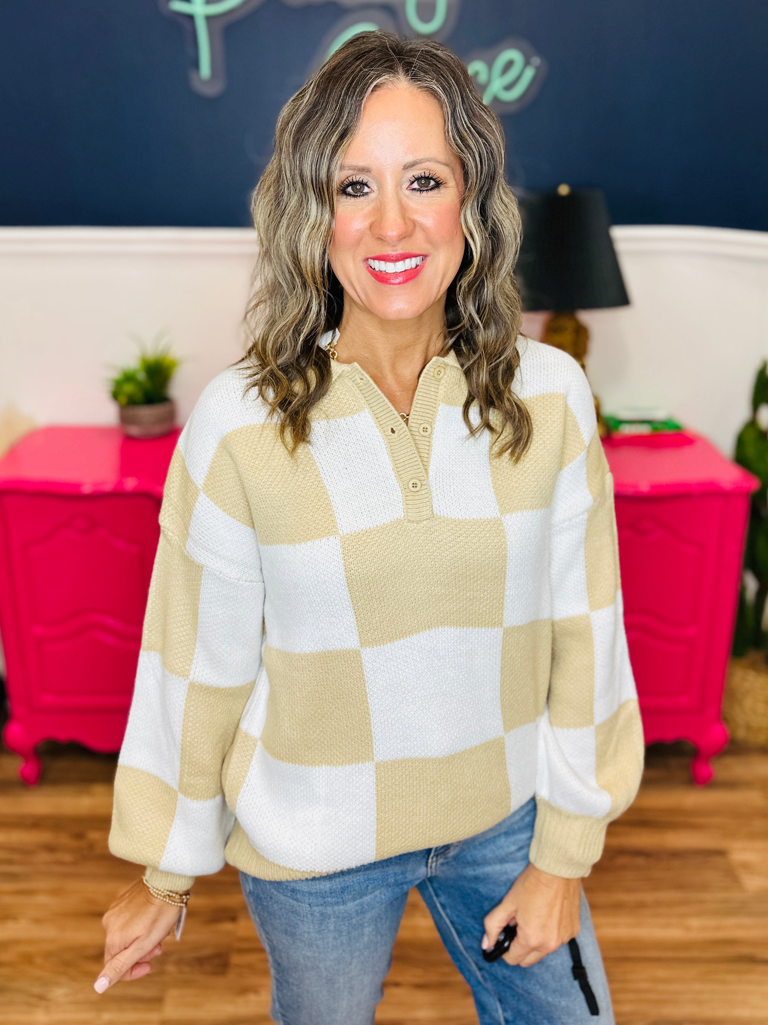 - Beige & White Checkered Pattern