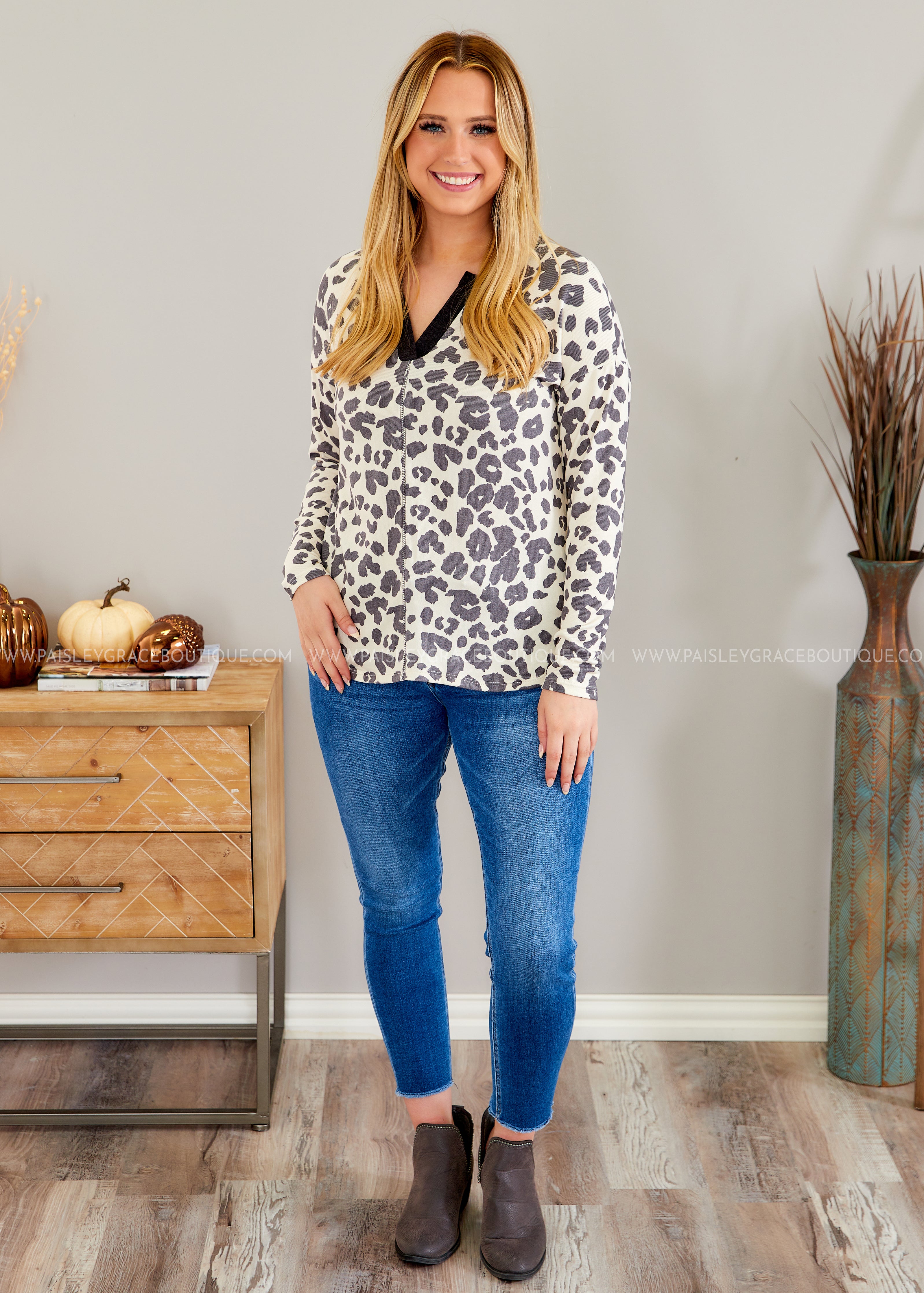- V-Neckline; Full-Length Sleeves; Curved Hemline