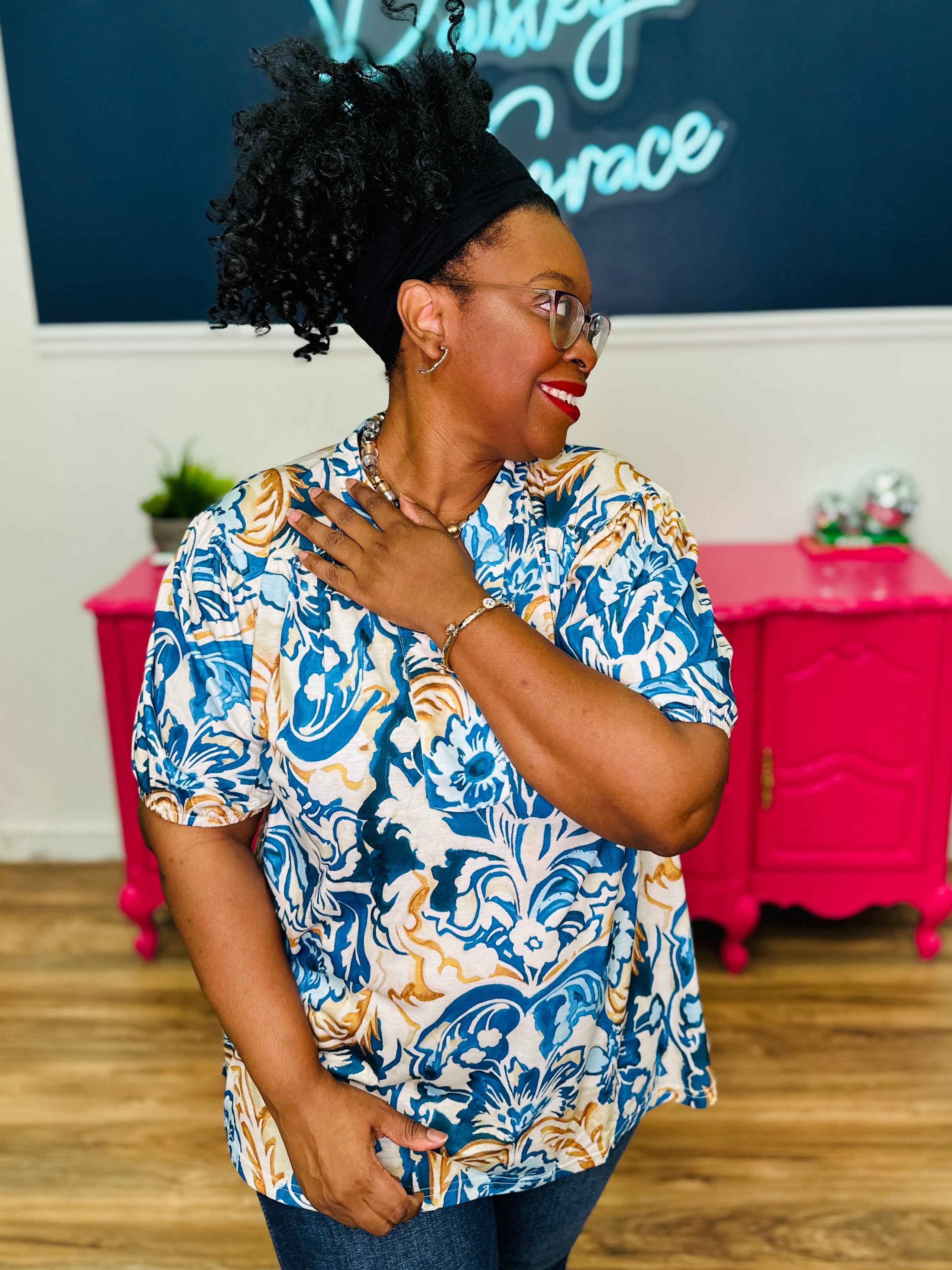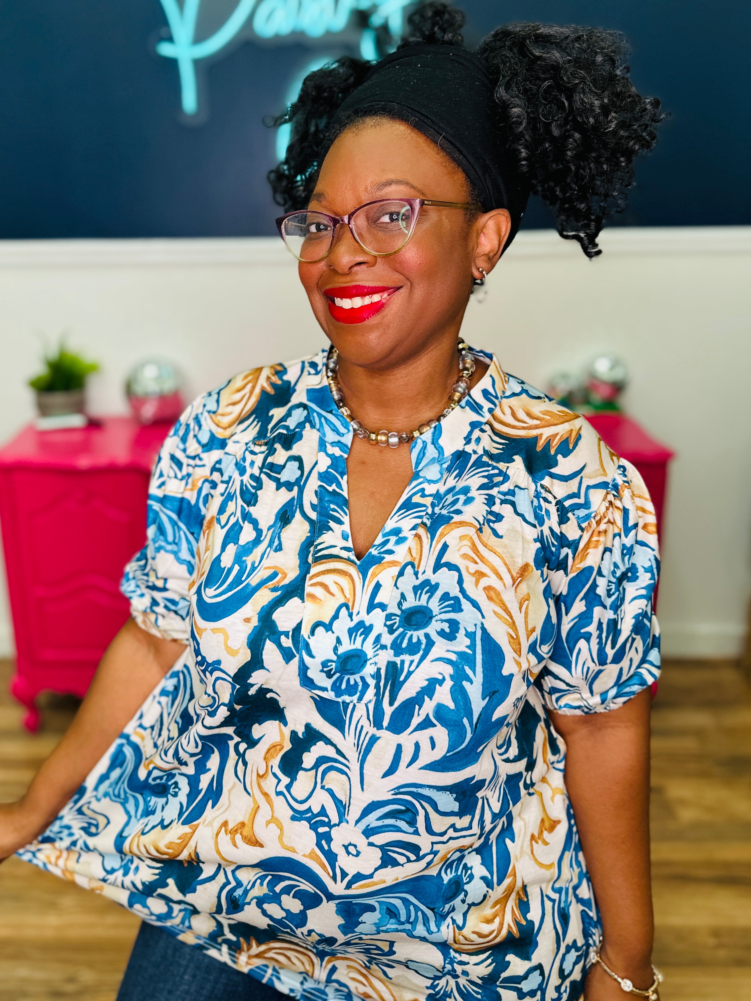 - V-Neckline | Short Puff Sleeves | Straight Hemline