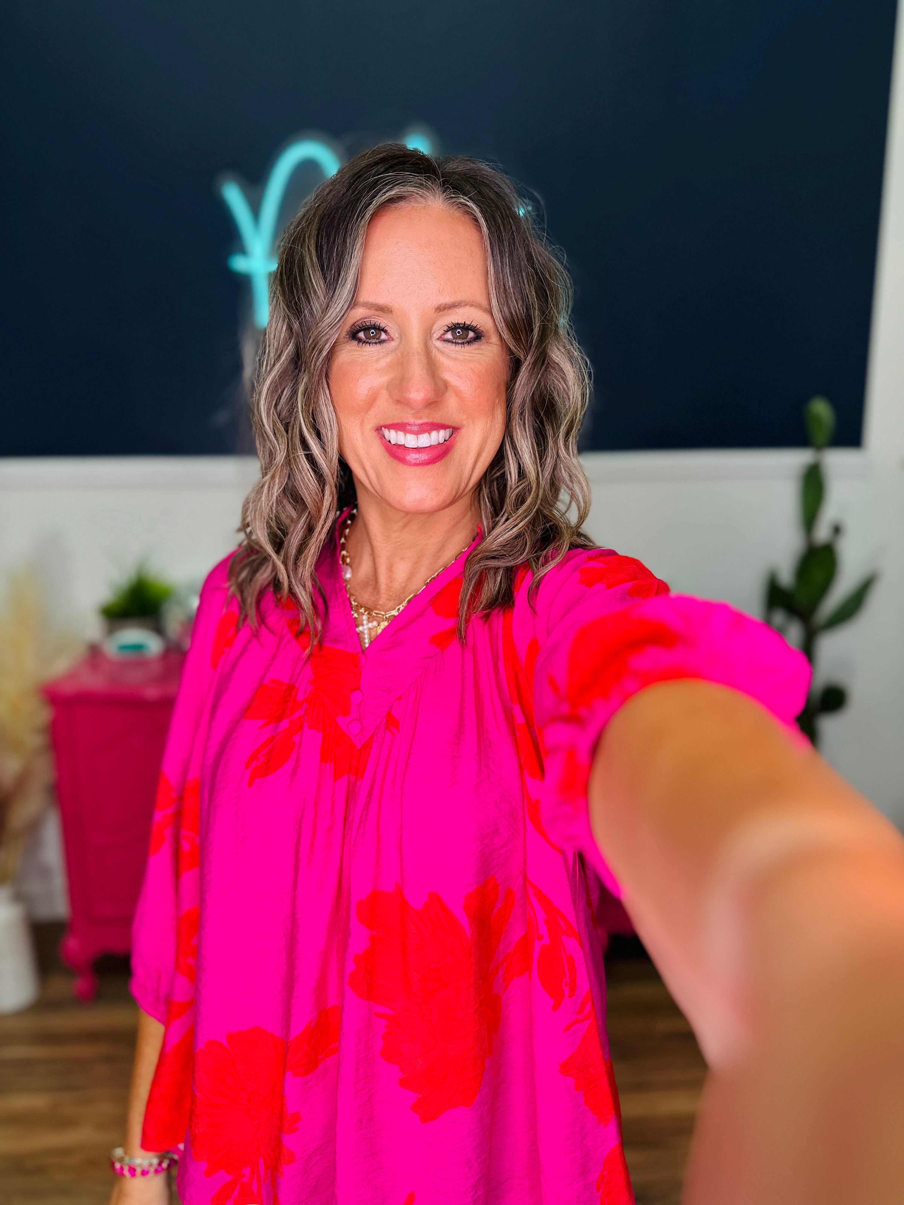 - V-Neckline | 3/4 Puff Sleeves | Straight Hemline