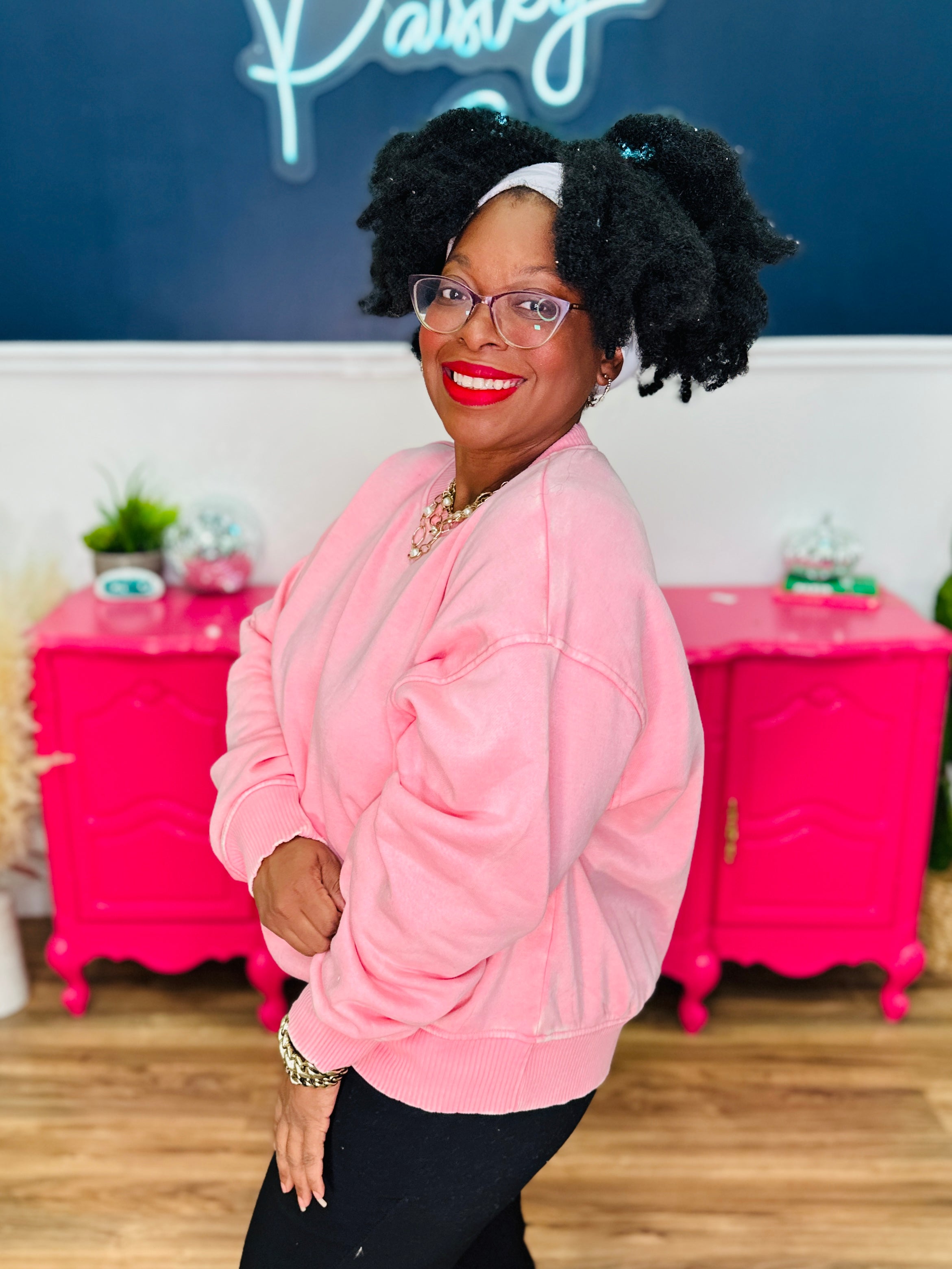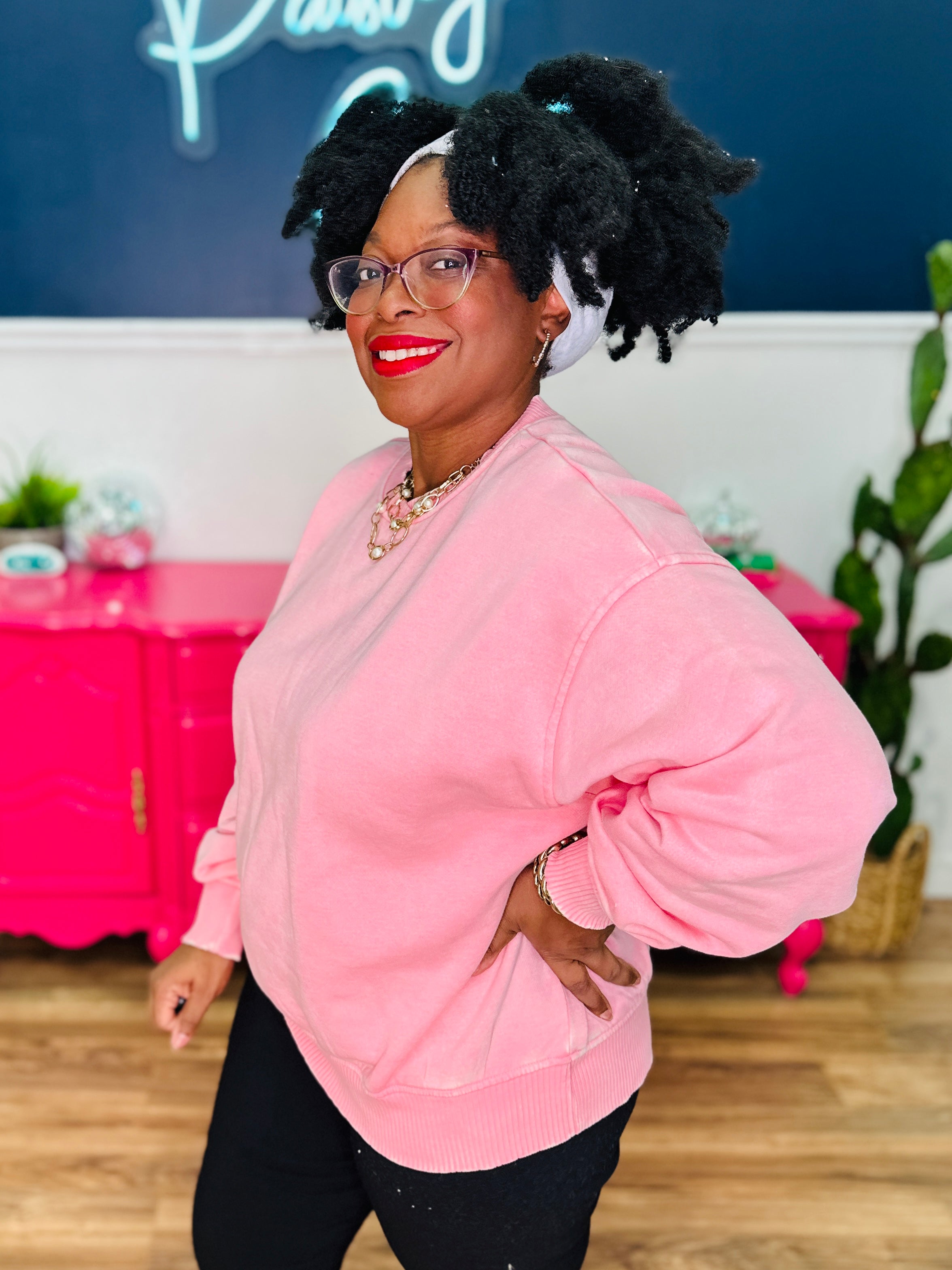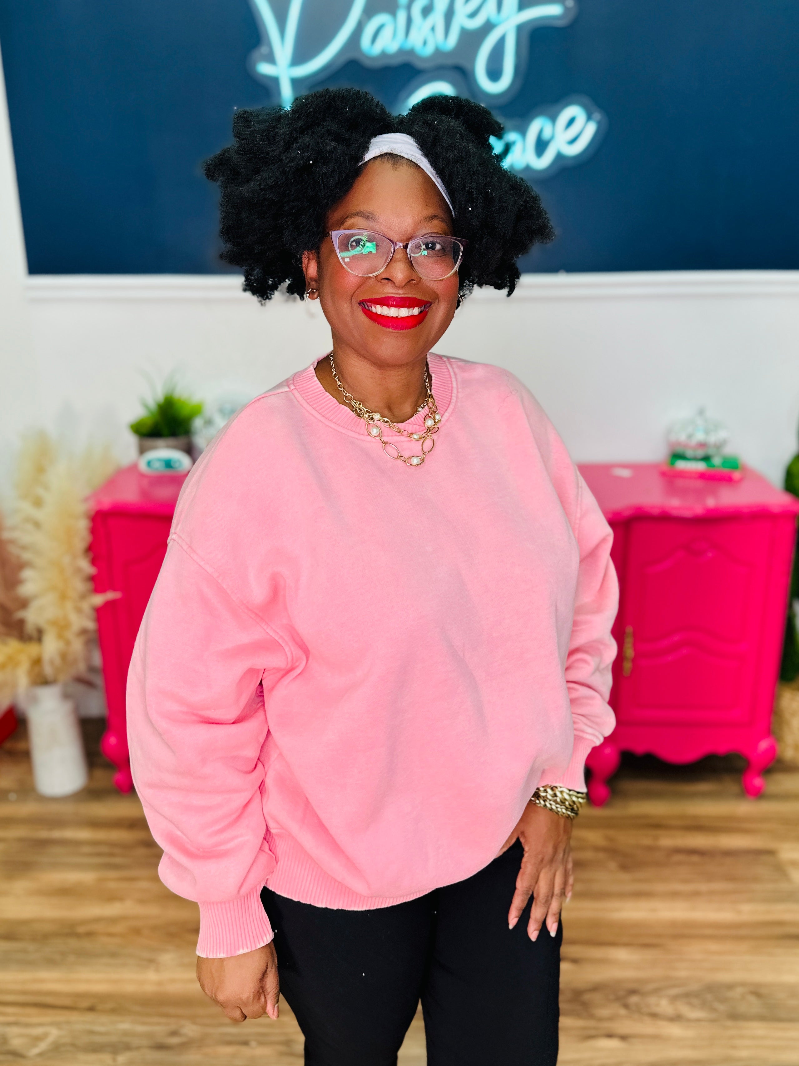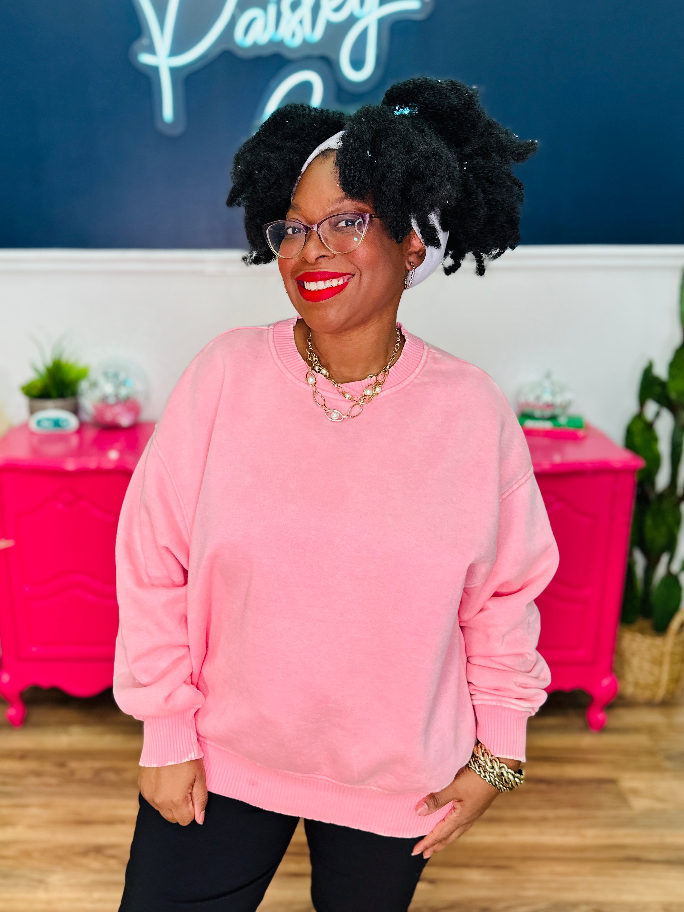 Petra Acid Wash Oversized Pullover - Dk Pink