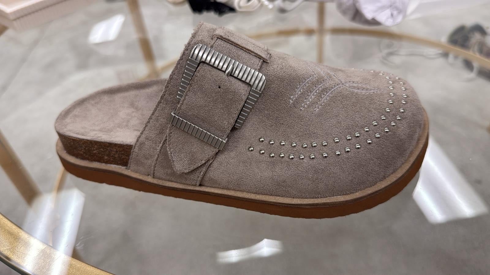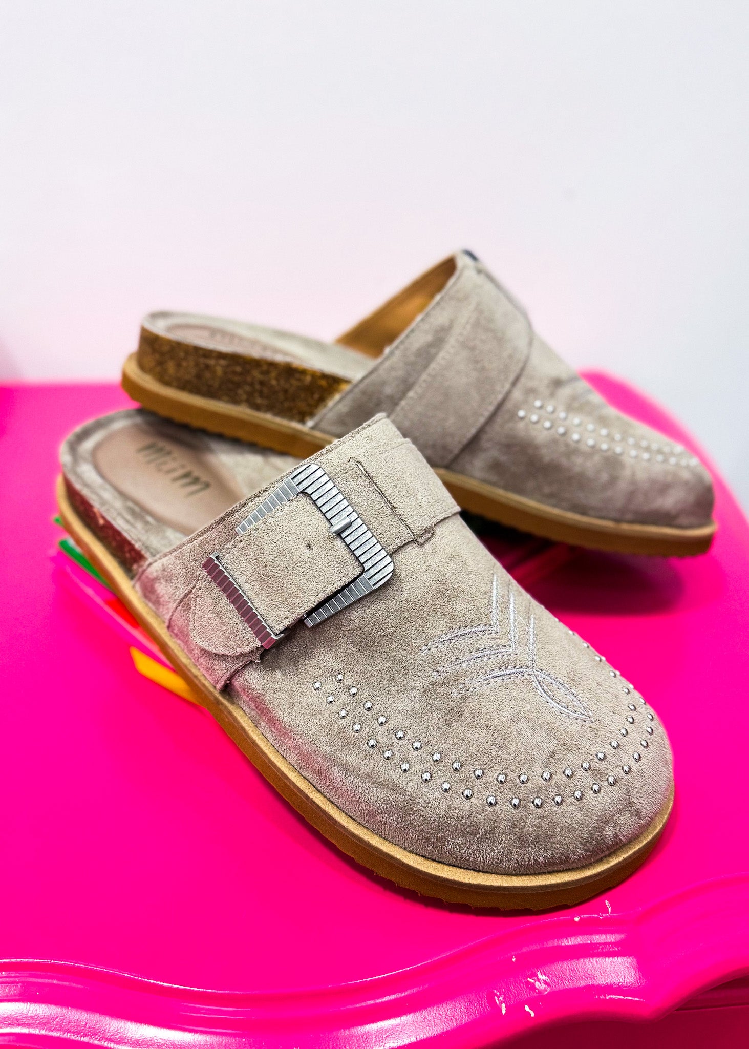 The Juniper Slides are where cool-girl comfort meets silver-studded sass. Wrapped in soft grey suede with a bold western buckle and eye-catching silver details, these slide-on clogs bring major style with zero effort. And with ultra-comfy cushioned soles, they’re made for all-day wear—whether you're out on the town or kickin’ back on the porch. Easy to wear, hard to forget — the Junipers are the slide you’ll keep reaching for, season after season.