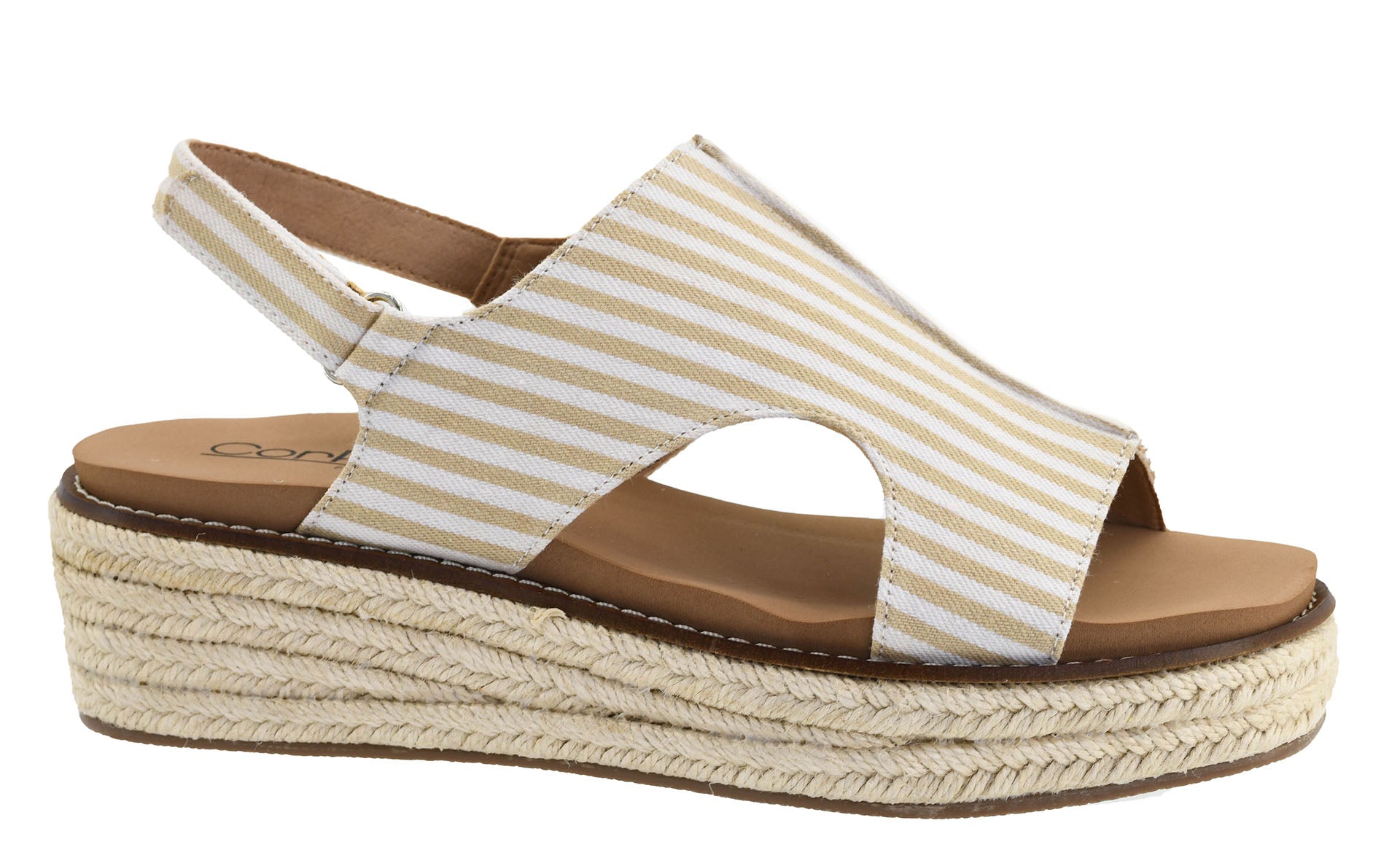 Ready Or Not Tan White Stripe Wedge by Corkys