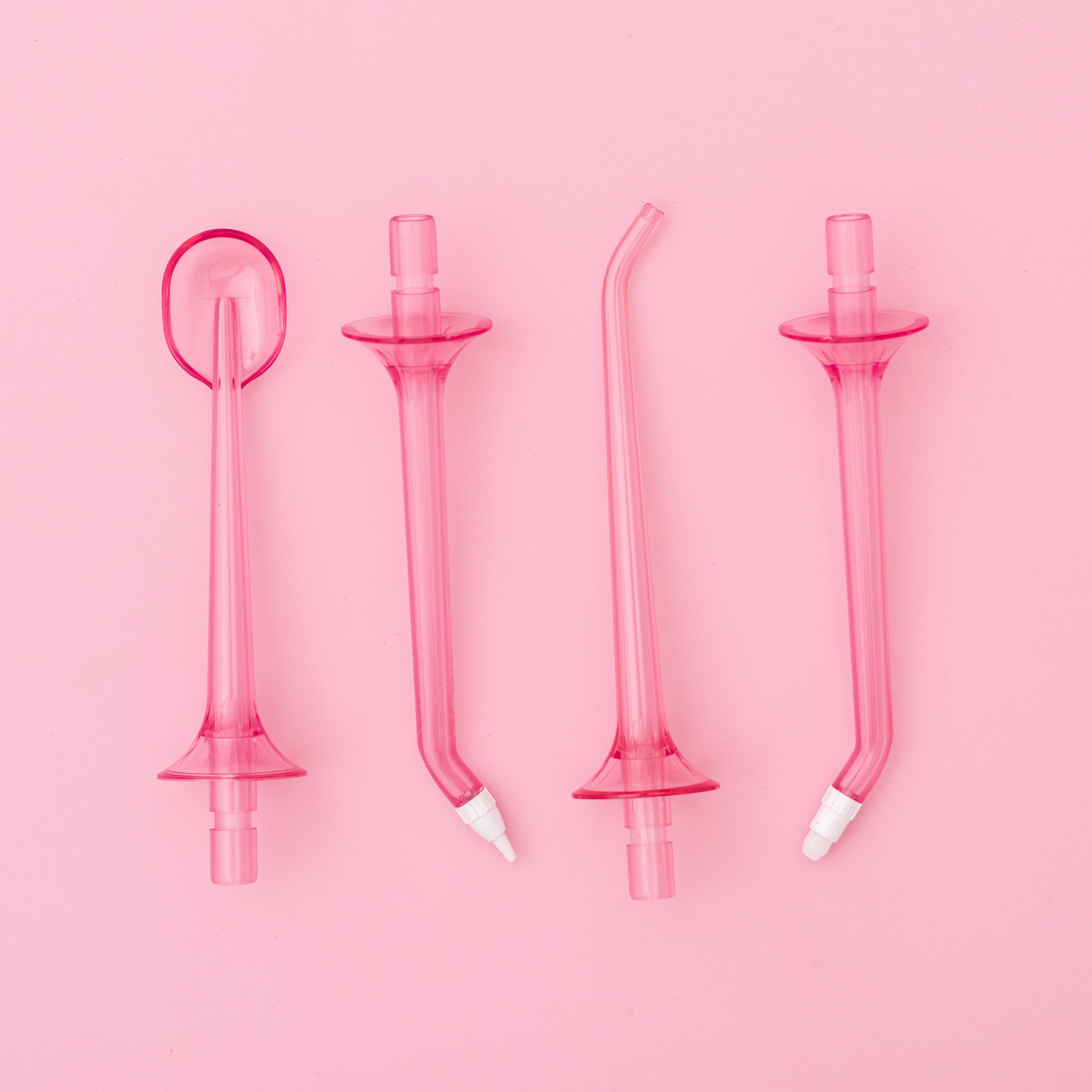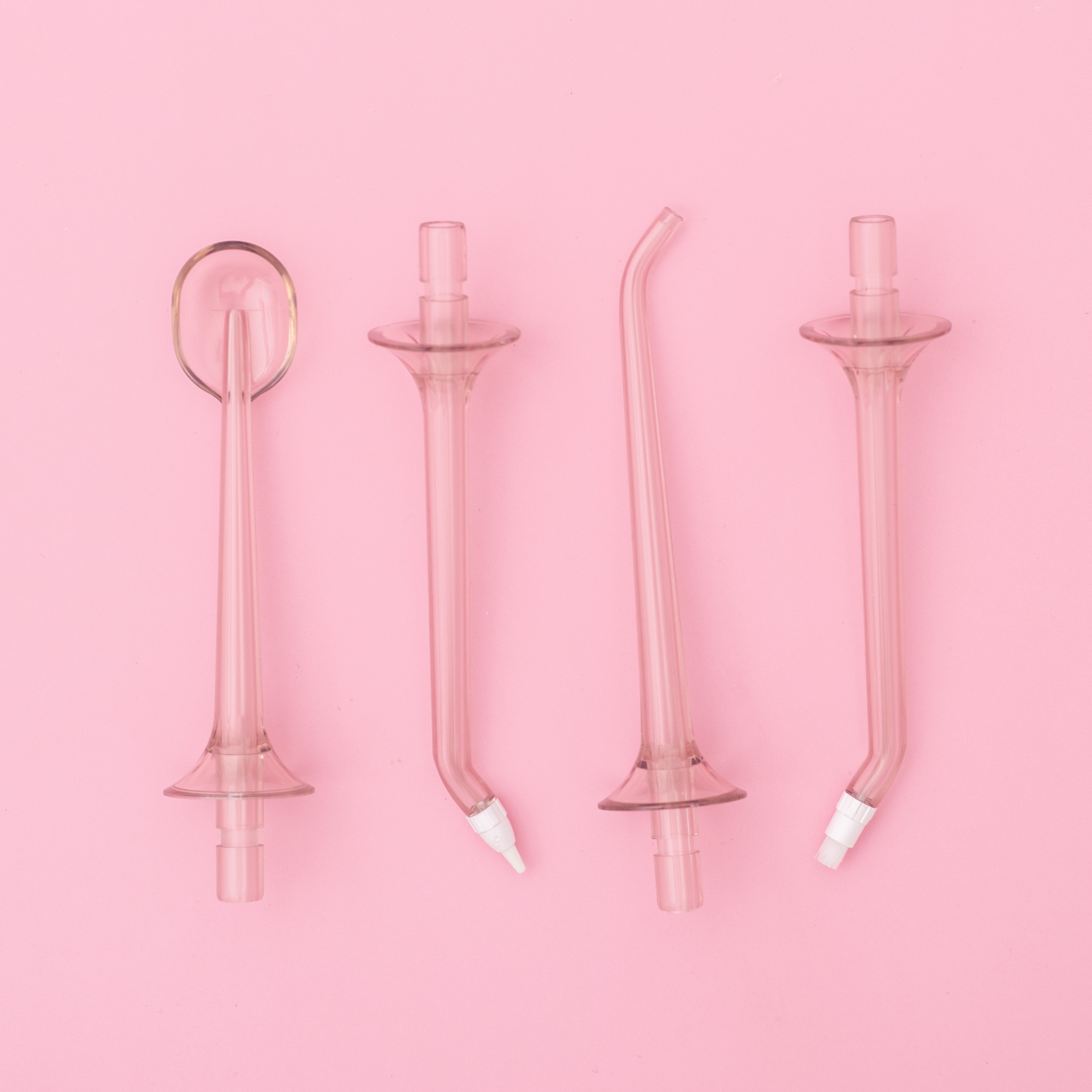 Start at the back of your teeth with the flosser tip. Hold the device at a 90 degree angle and spray. To prevent water splashing, close your lips slightly. Be sure to allow the water to drain out into the sink.