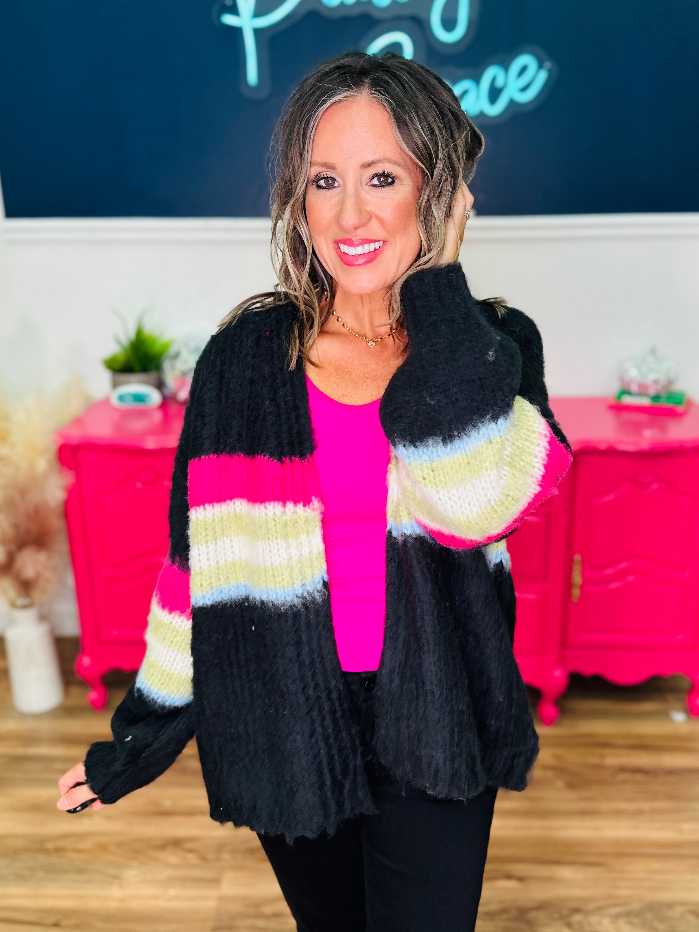 • Open Front | Full-length Balloon Sleeves | Straight Hemline