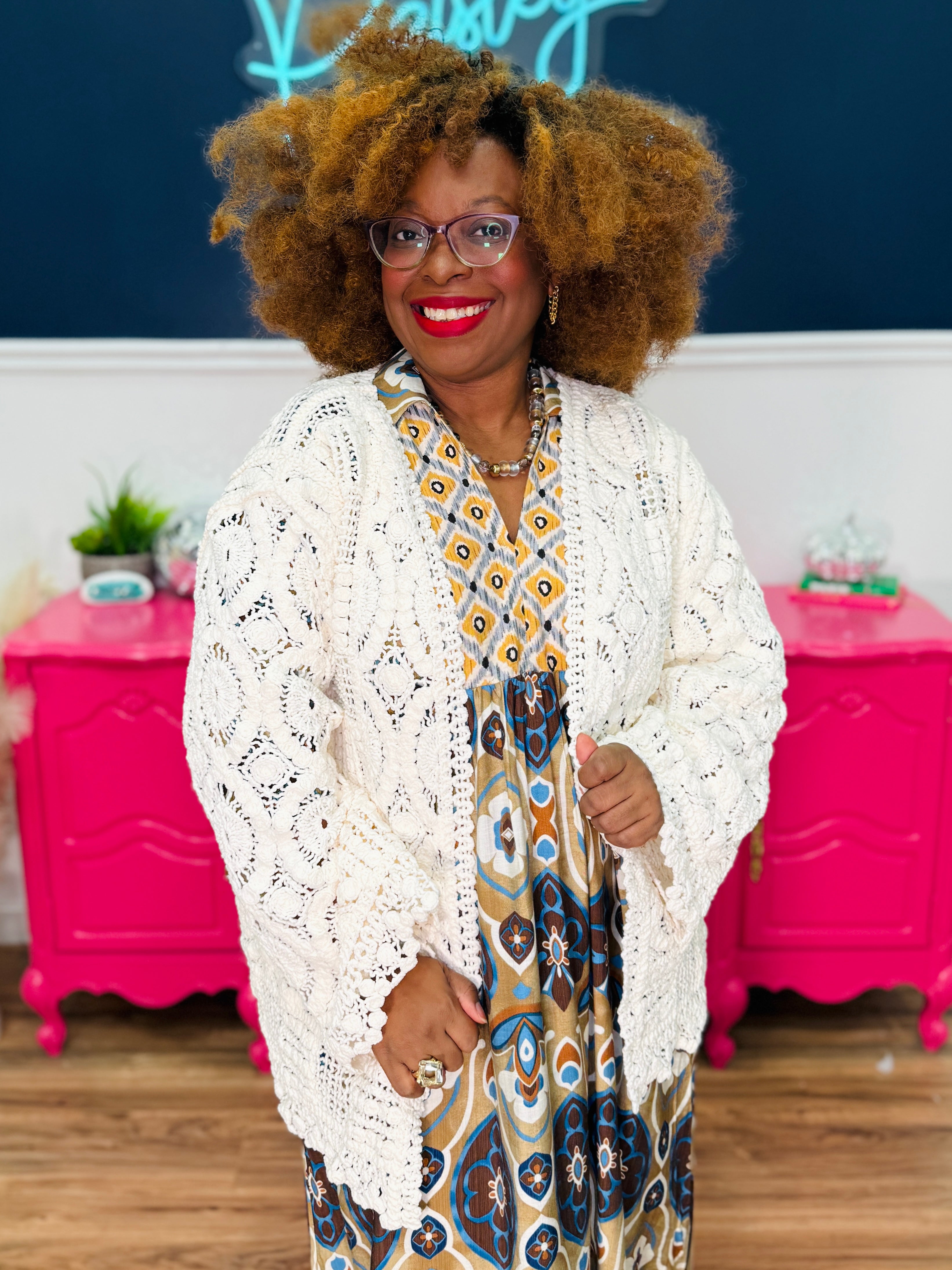 - Open Front | Full-length Sleeves | Scalloped Edged Hem