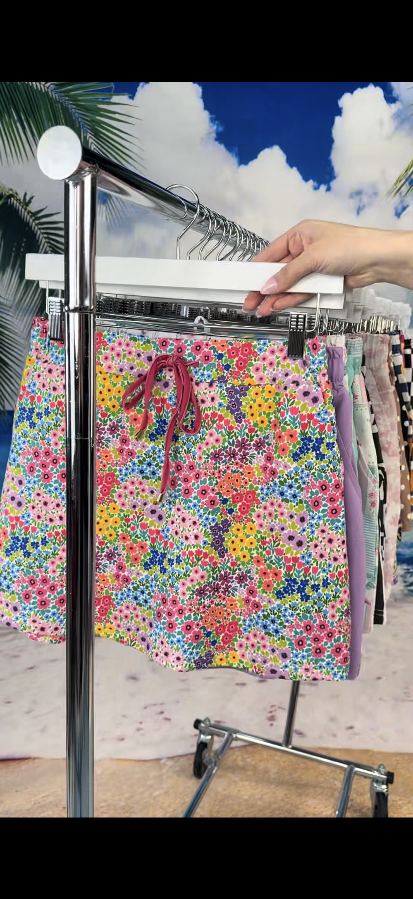 Made with stretch fabric and featuring a built-in short for added convenience. Plus, the elastic waistband and tie waistband add a fun touch while the pockets provide functionality.