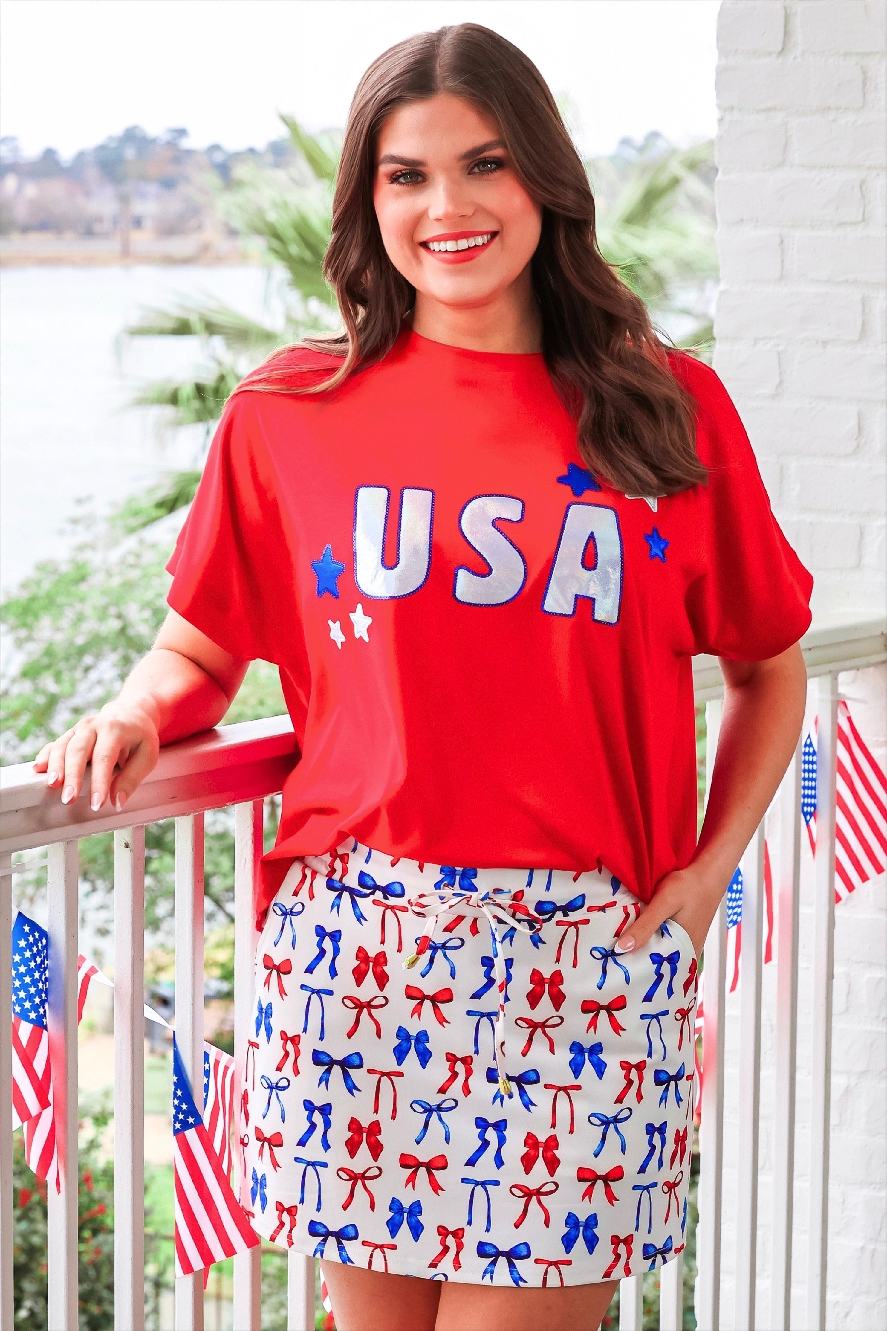Start a style conversation with this playful patriotic skort. Made with lightweight fabric, it features an elastic band on the back and built-in shorts to keep you comfortable yet totally on-trend. Side pockets and a drawstring add a practical finishing touch to the fun vibe.
