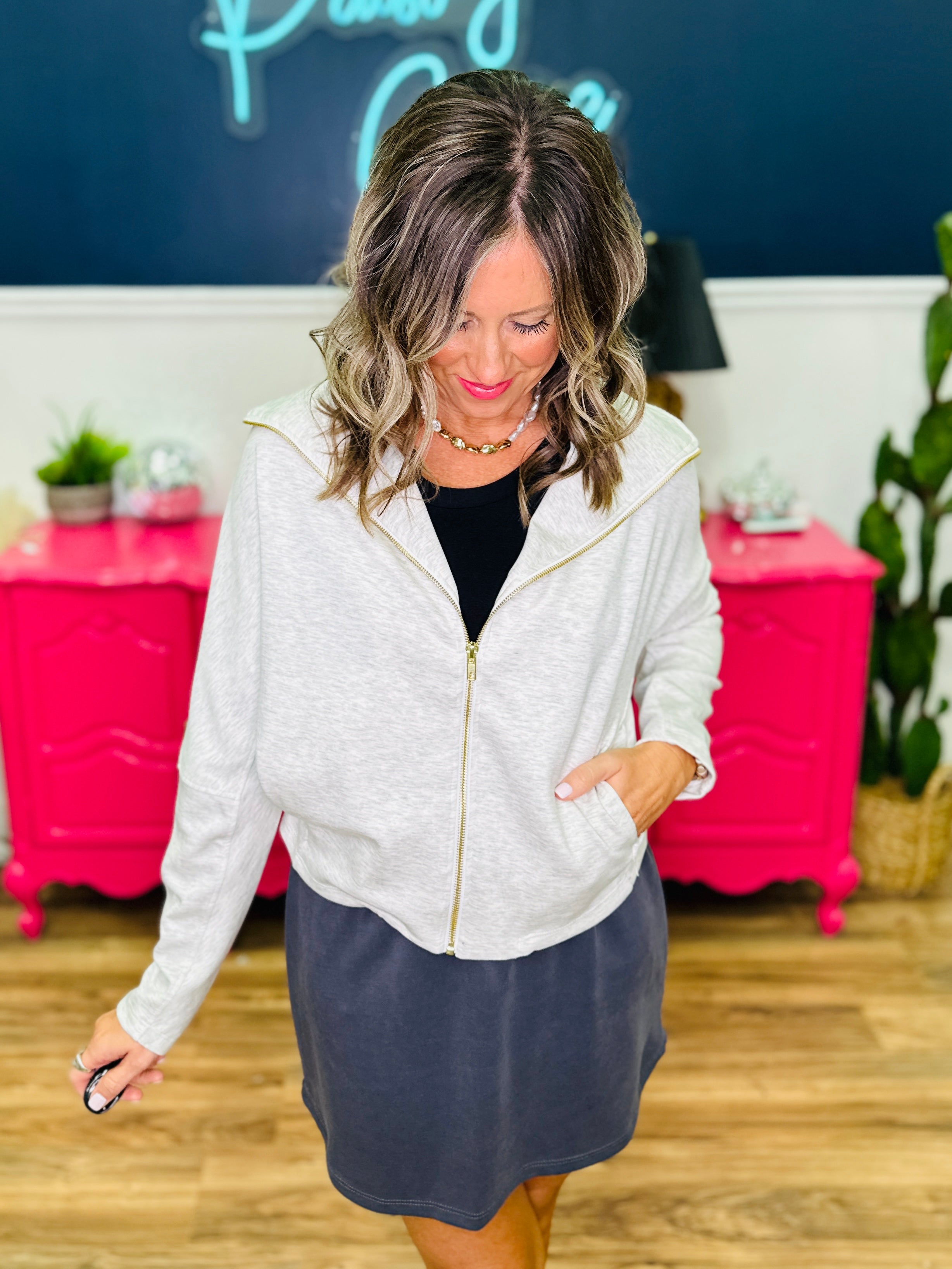 • Mock Neckline | Full-length Dolman Sleeves | Straight Hemline