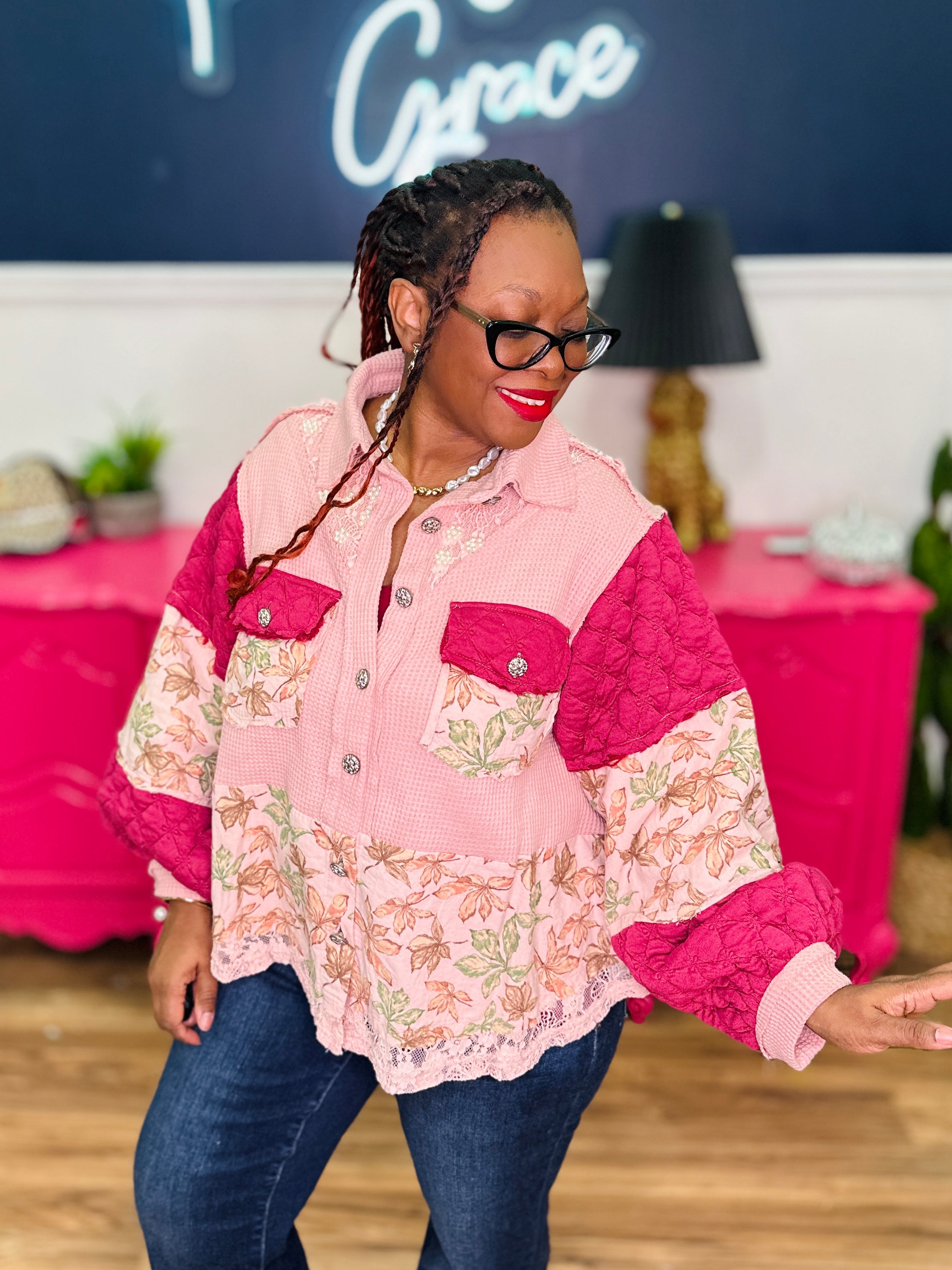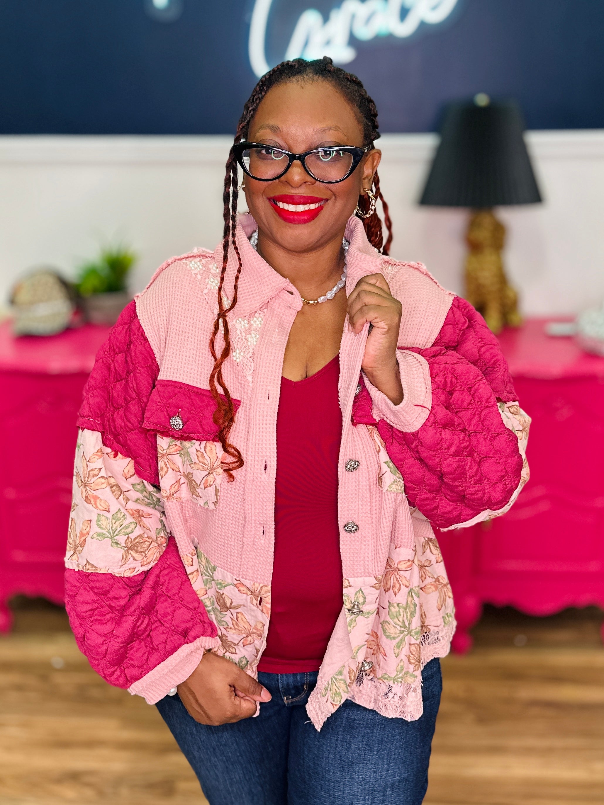- Pink, Berry & Peach - Quilted, Lace, Pearl & Patch Details