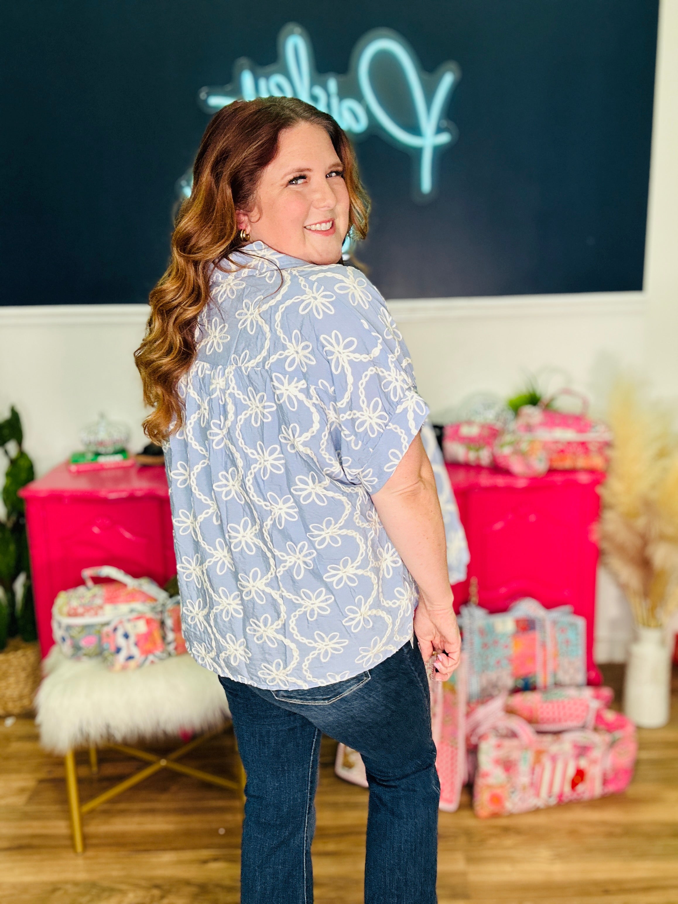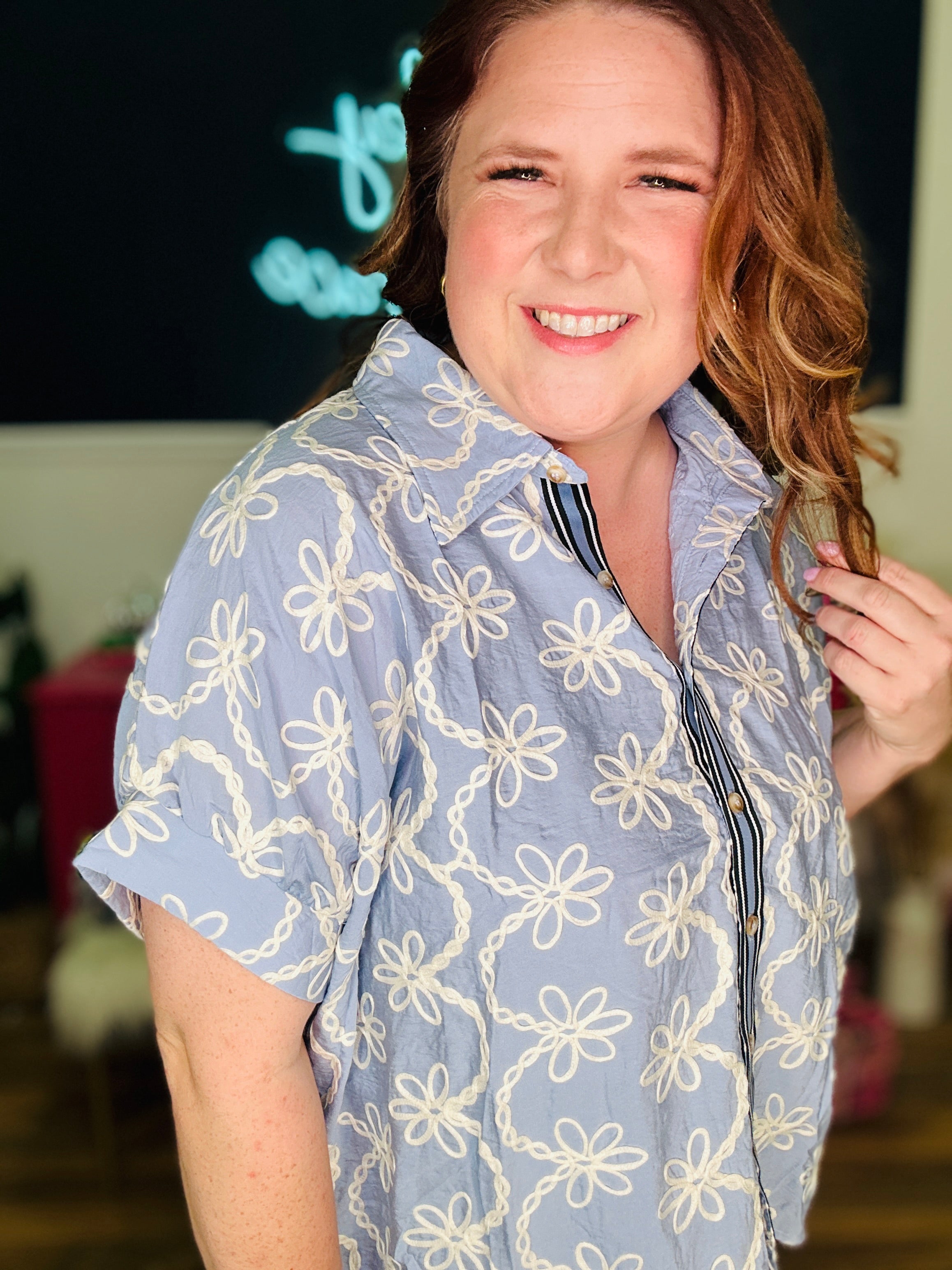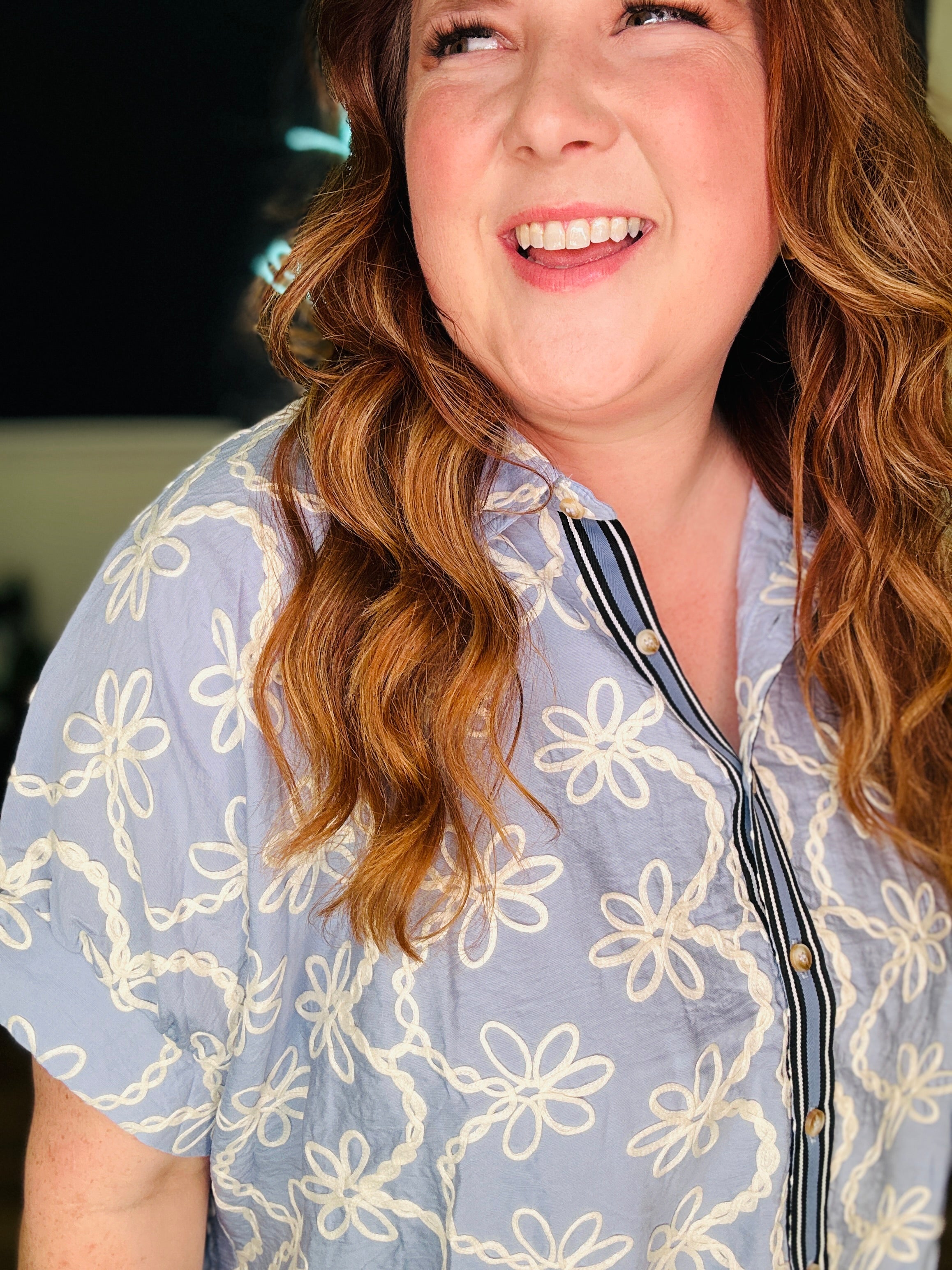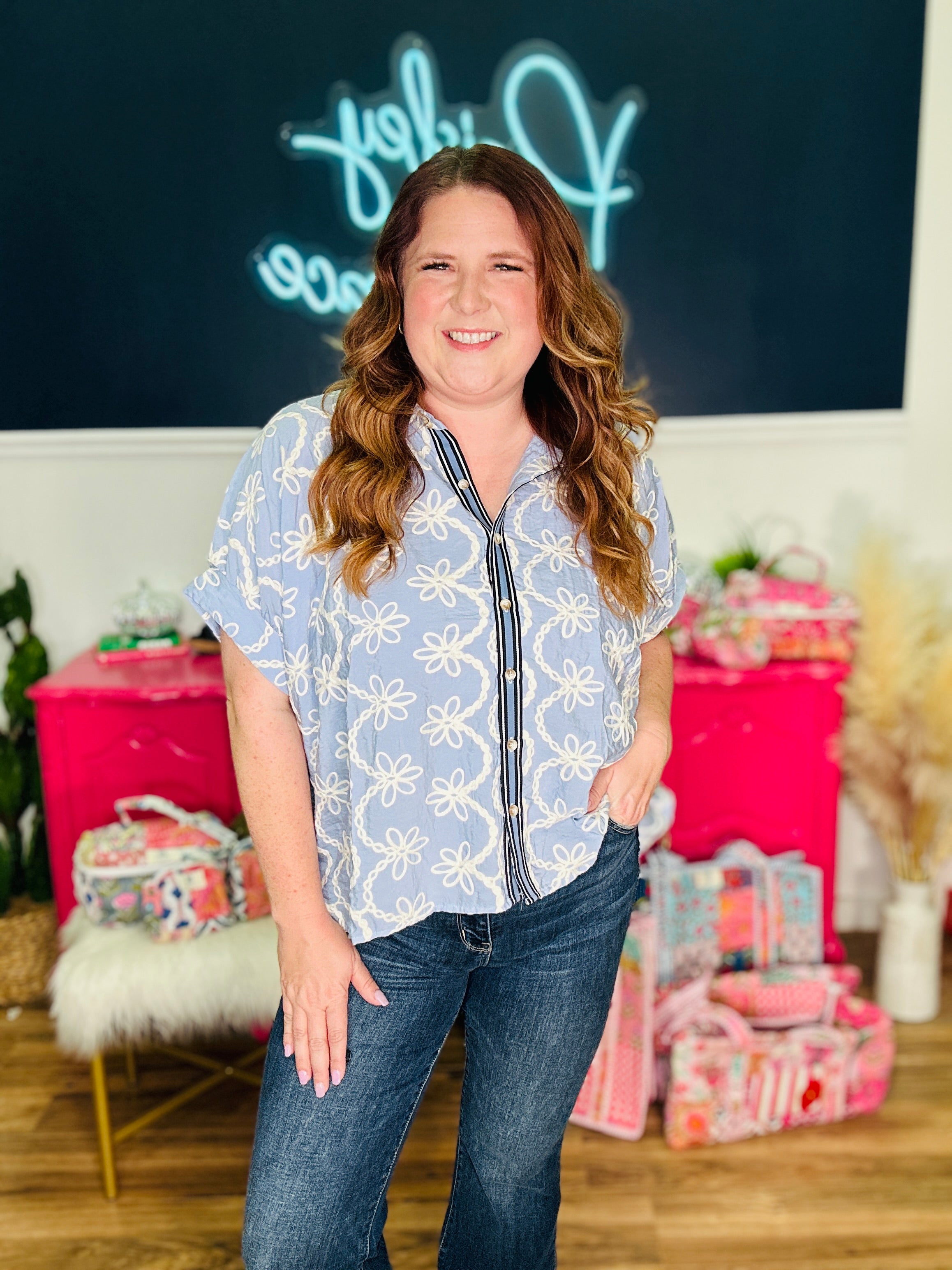 - Collared Neckline | Short Dolman Sleeves | Straight Hemline