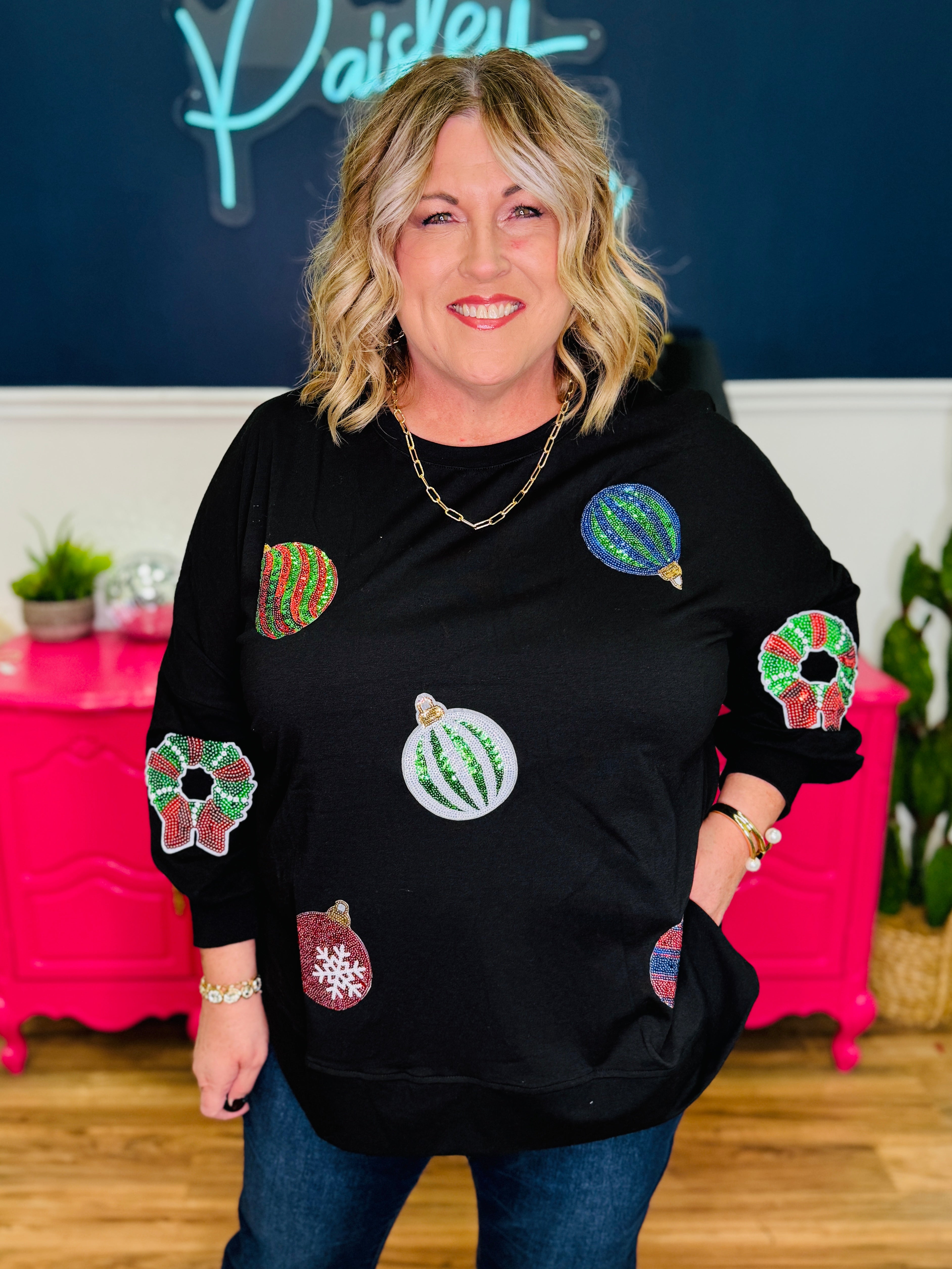 • Black w/ Multicolored Sequin Holiday Ornaments