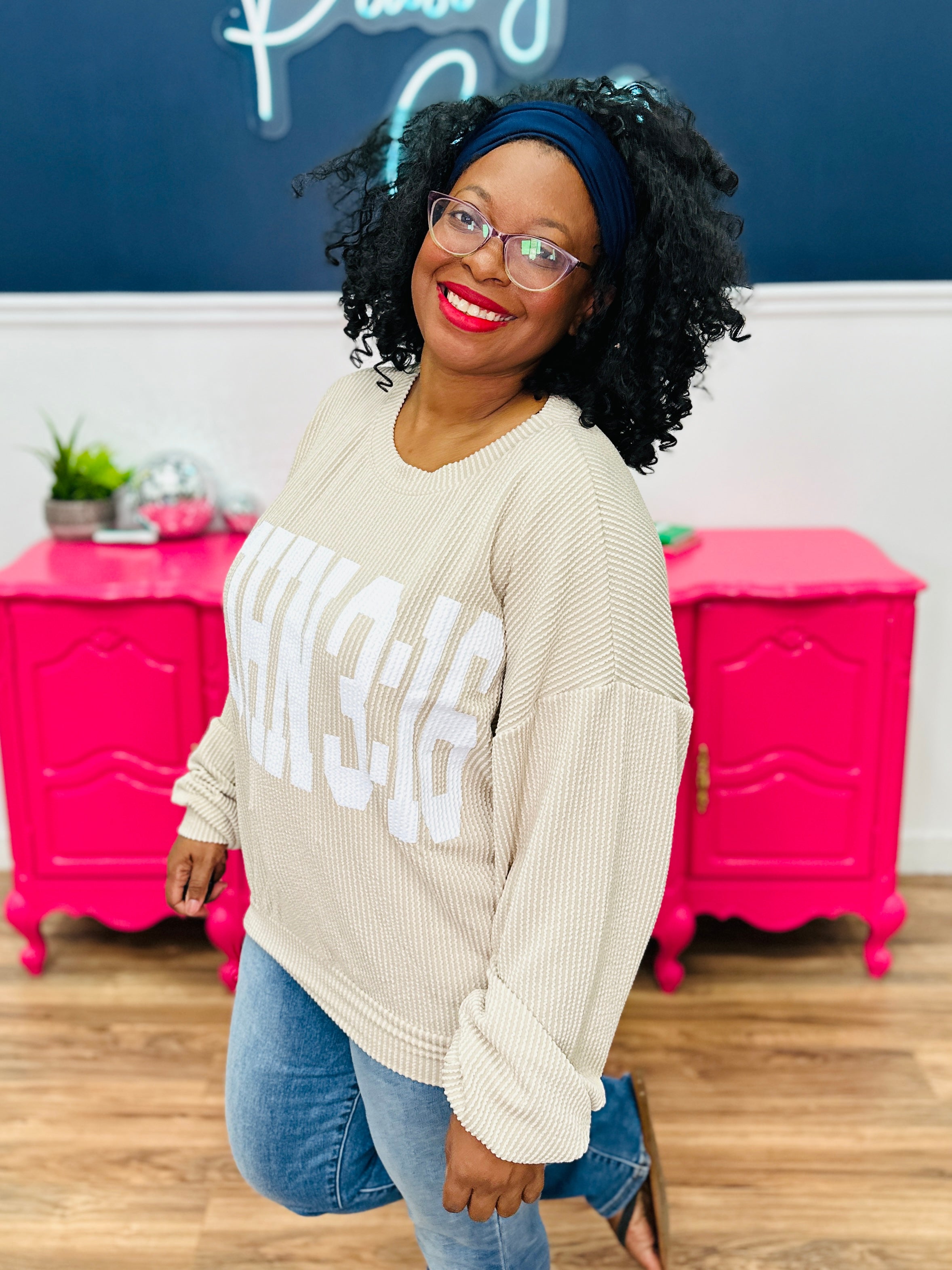 - Wavy Ribbed Knit | Has Stretch | Relaxed Fit