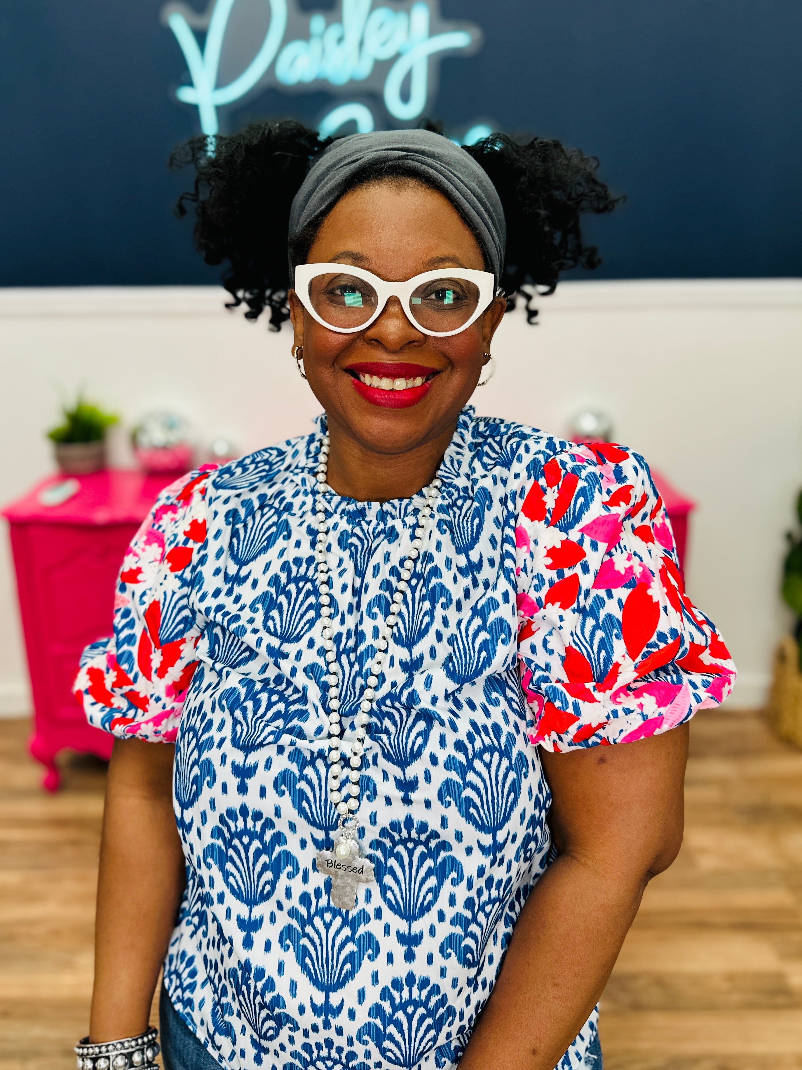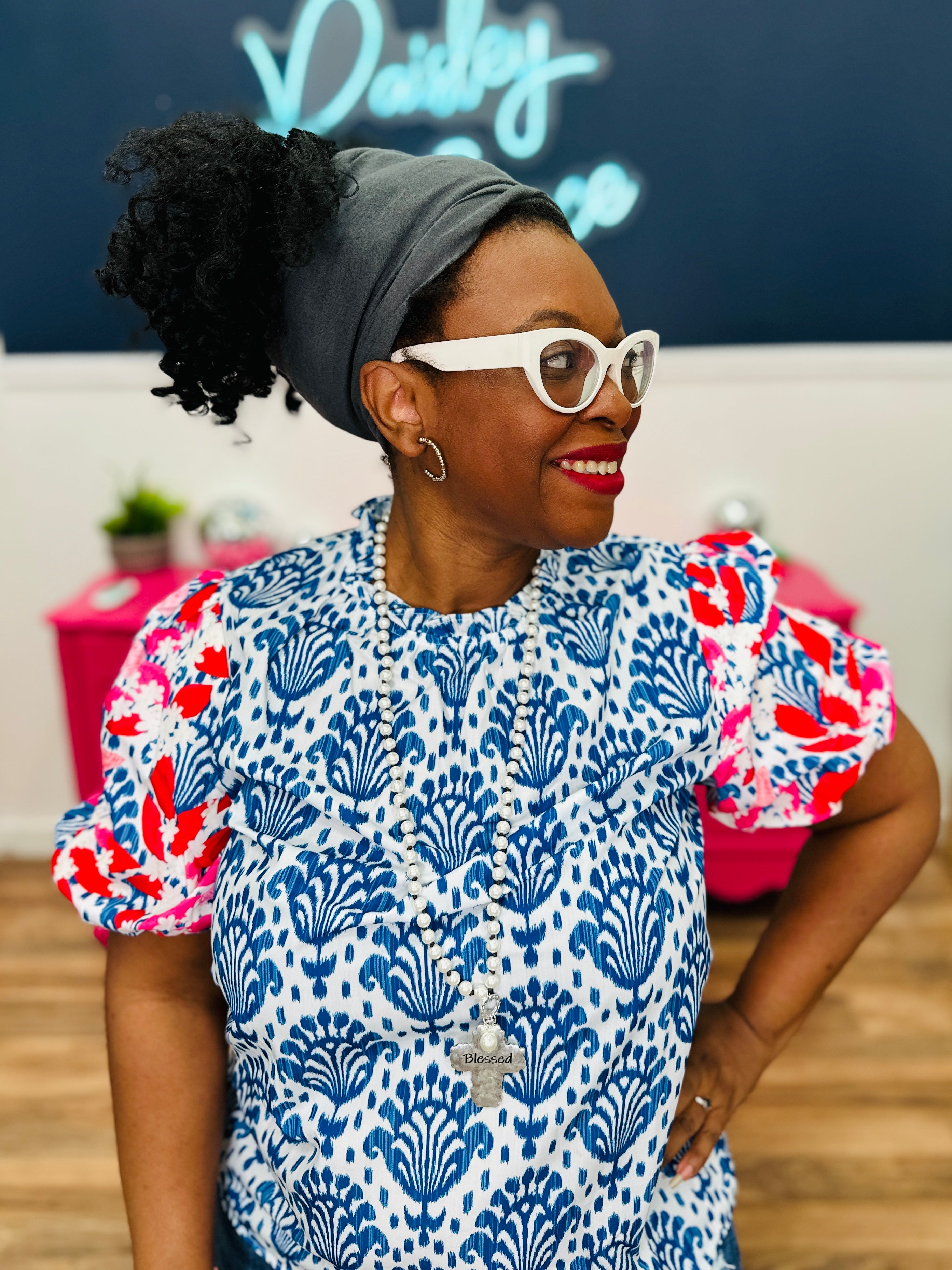 - Blue, White w/ Pink & Red Embroidery