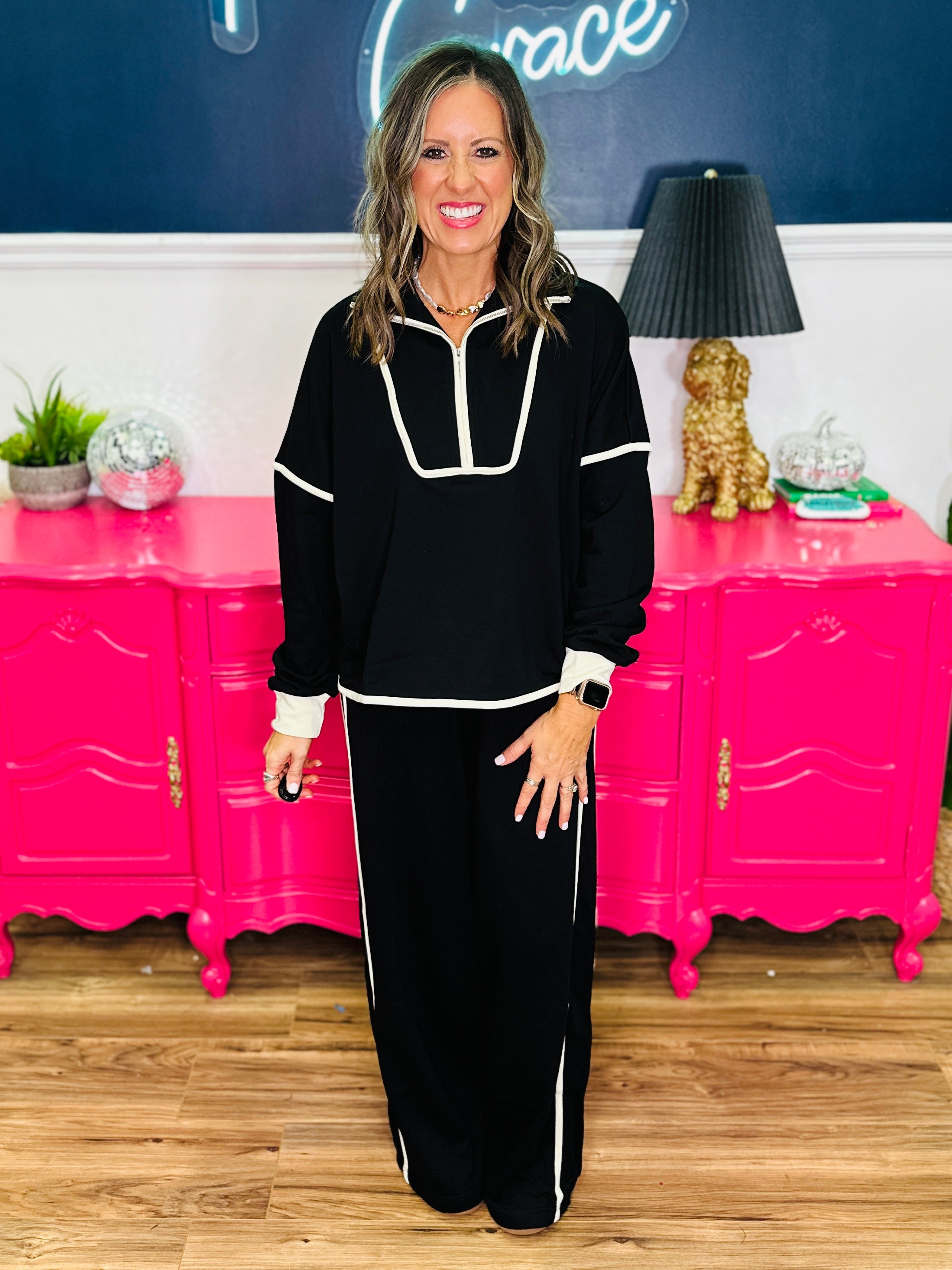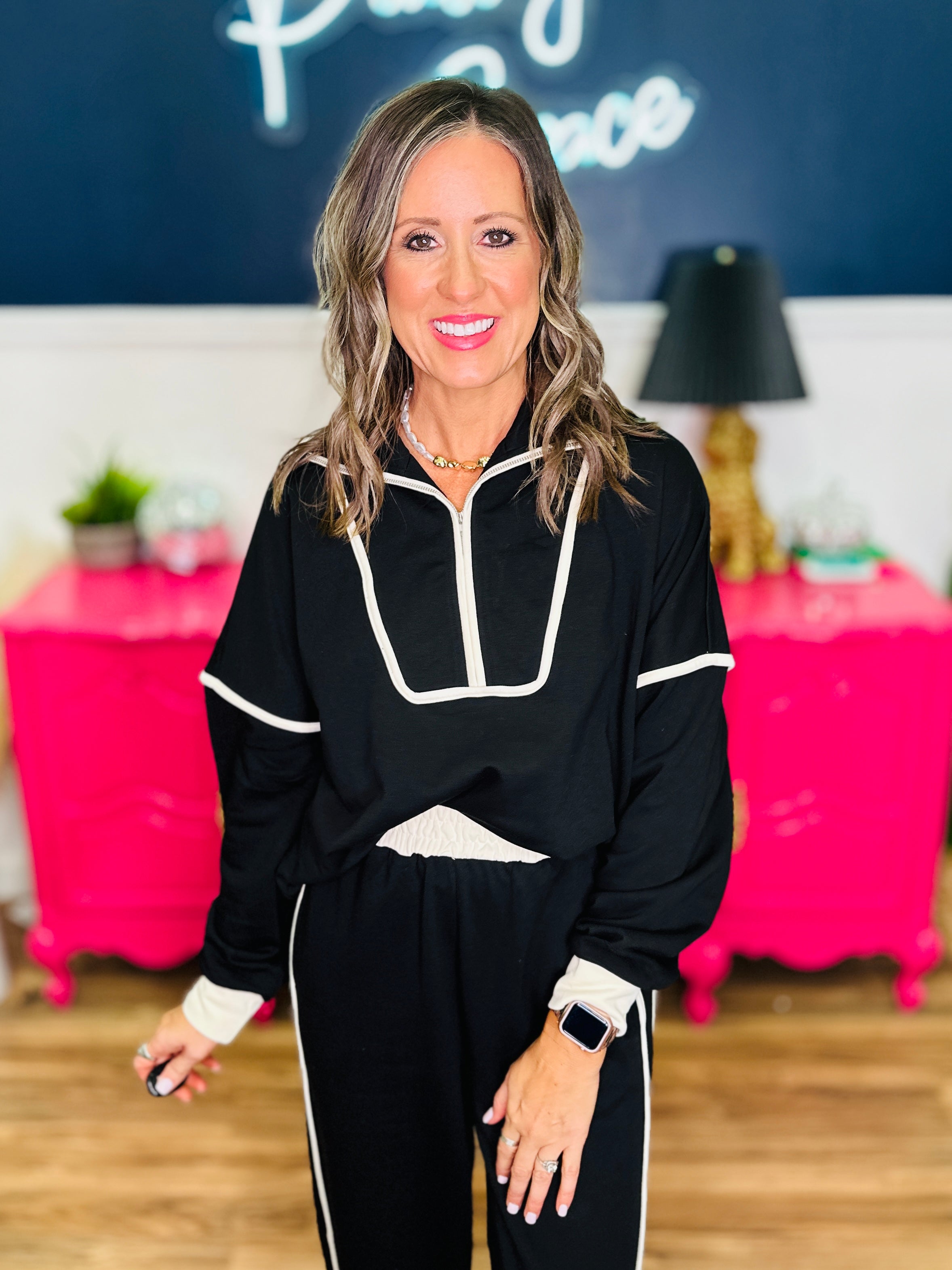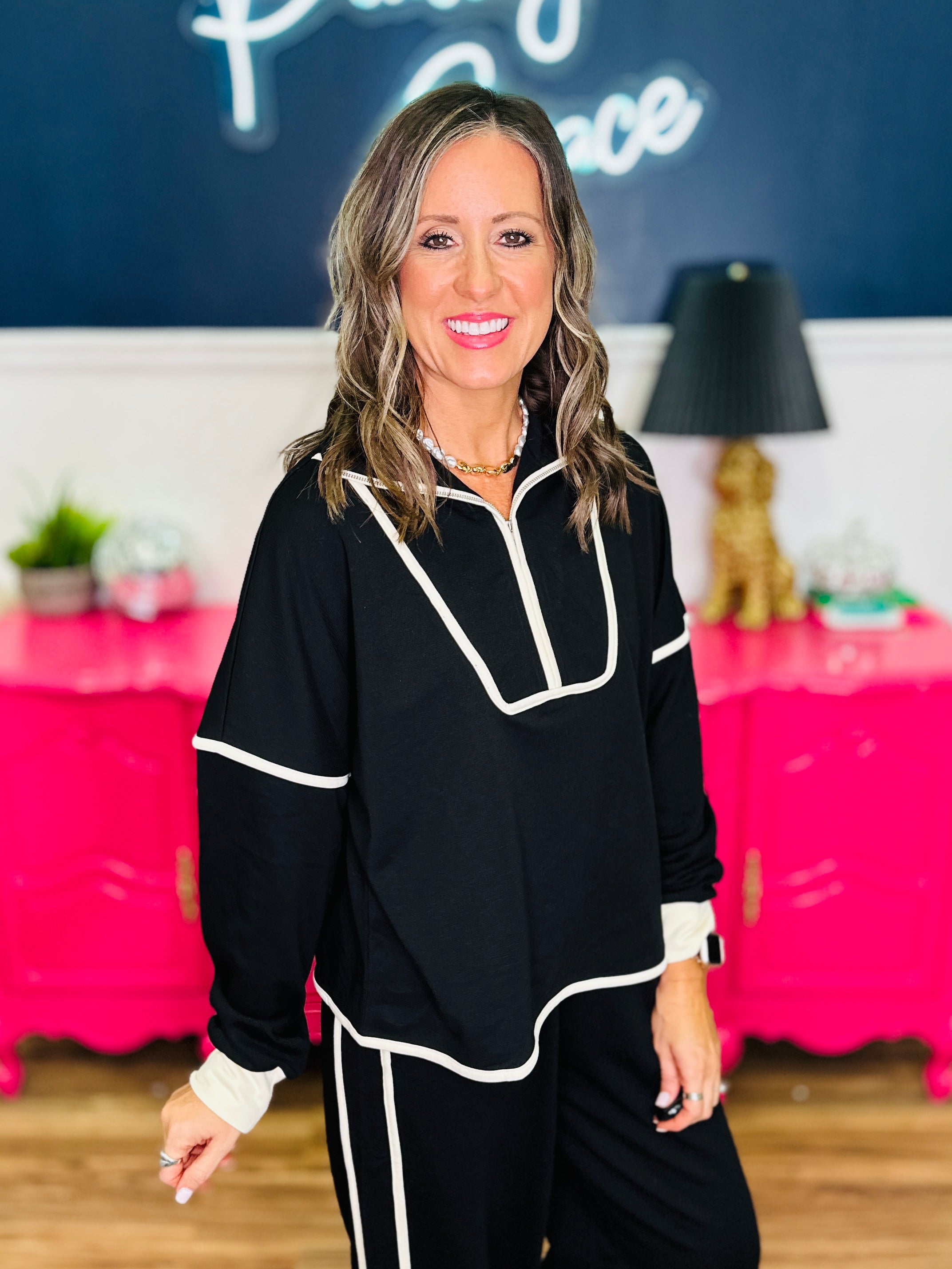 - Half-Zip Front | Full-length Dolman Sleeves | Straight Hemline
