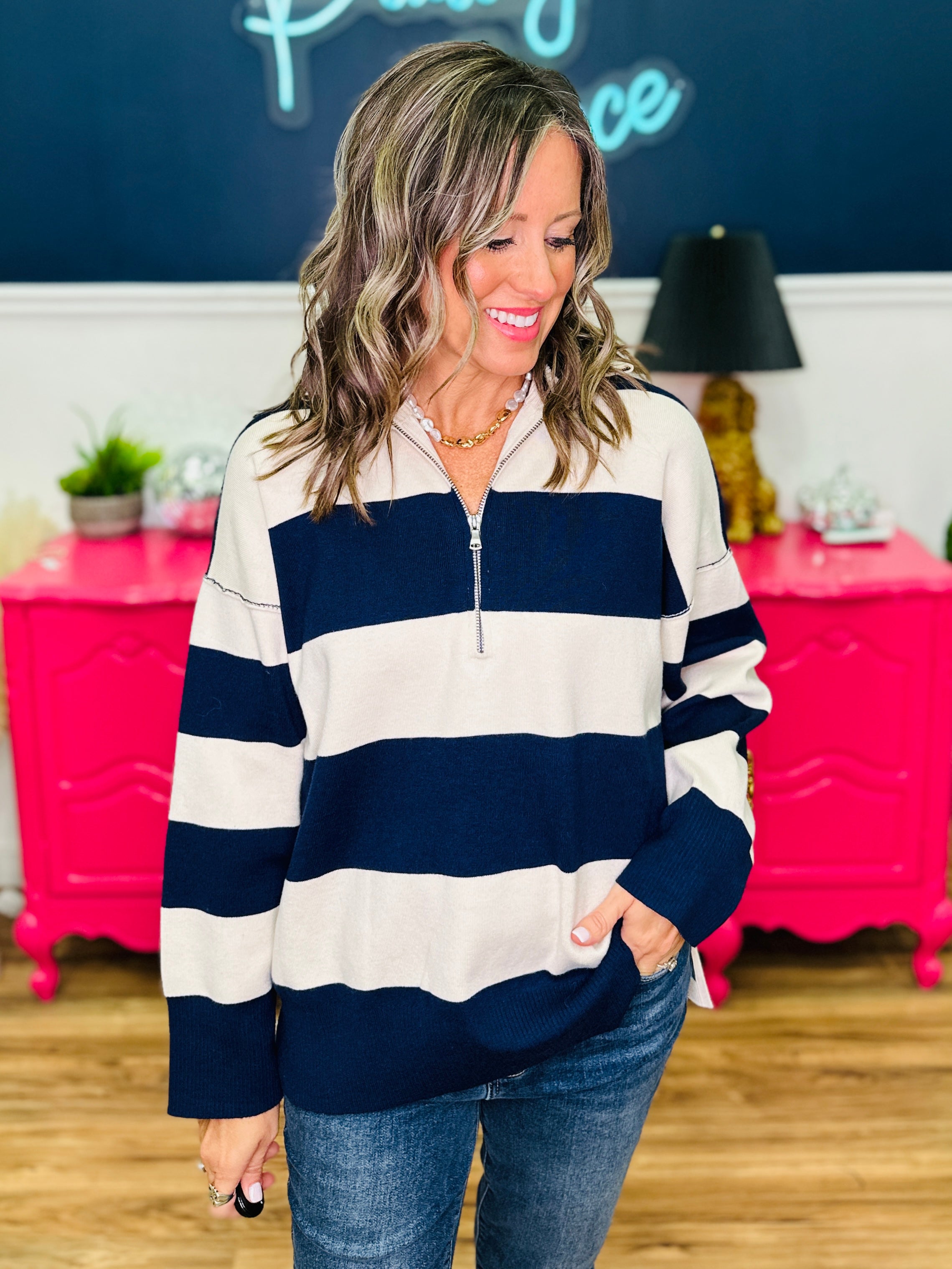 - Half Zip Mock Neckline | Full-length Drop-shoulder Sleeves | Split Hemline