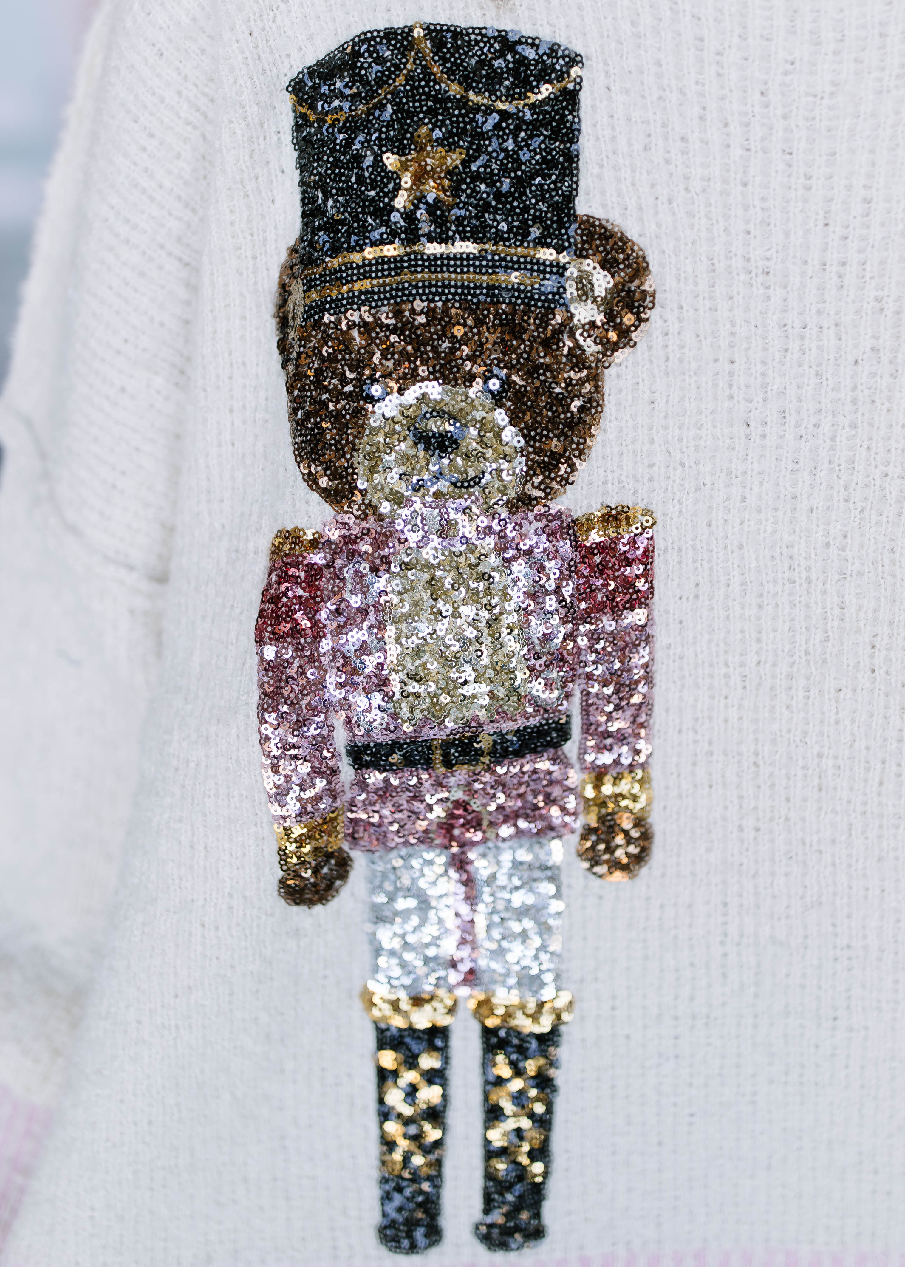 Noel Sequin Bear Nutcracker Ribbed Sweater