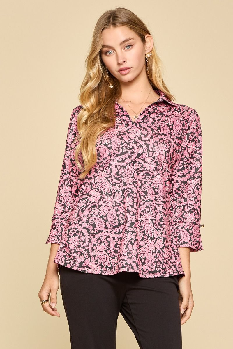 Paisley Print 3/4 Sleeve Sail Away Top