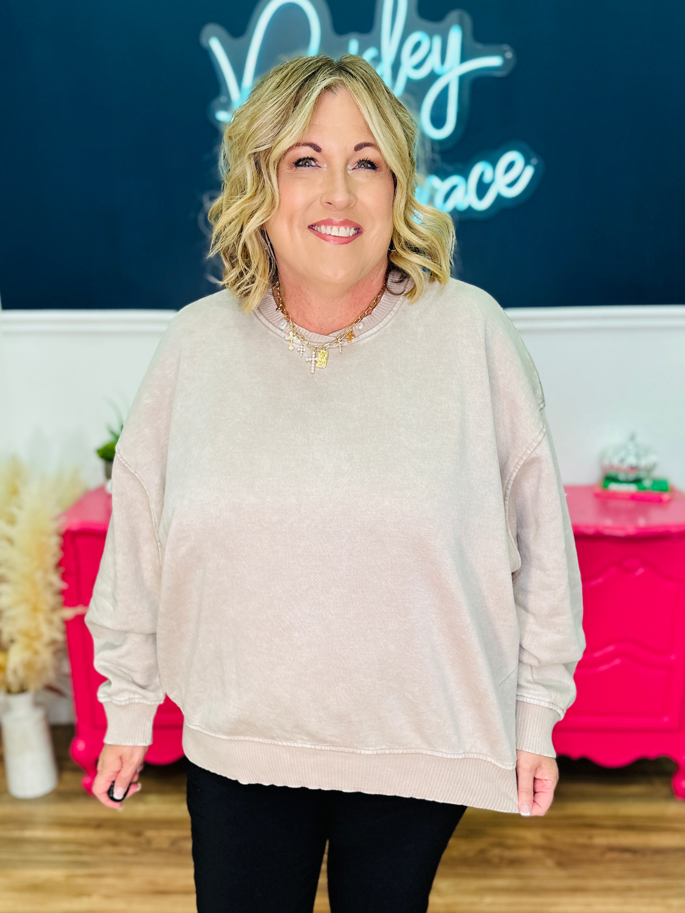 Petra Acid Wash Oversized Pullover - Ash Mocha