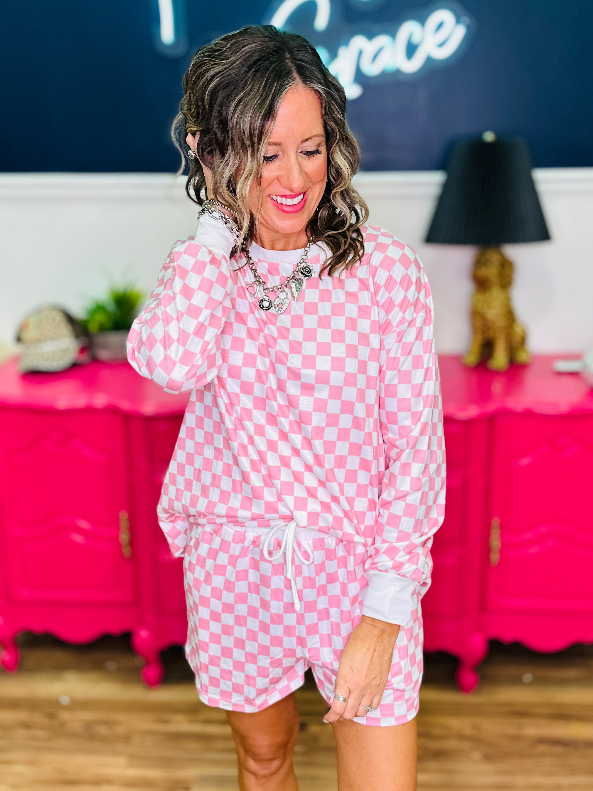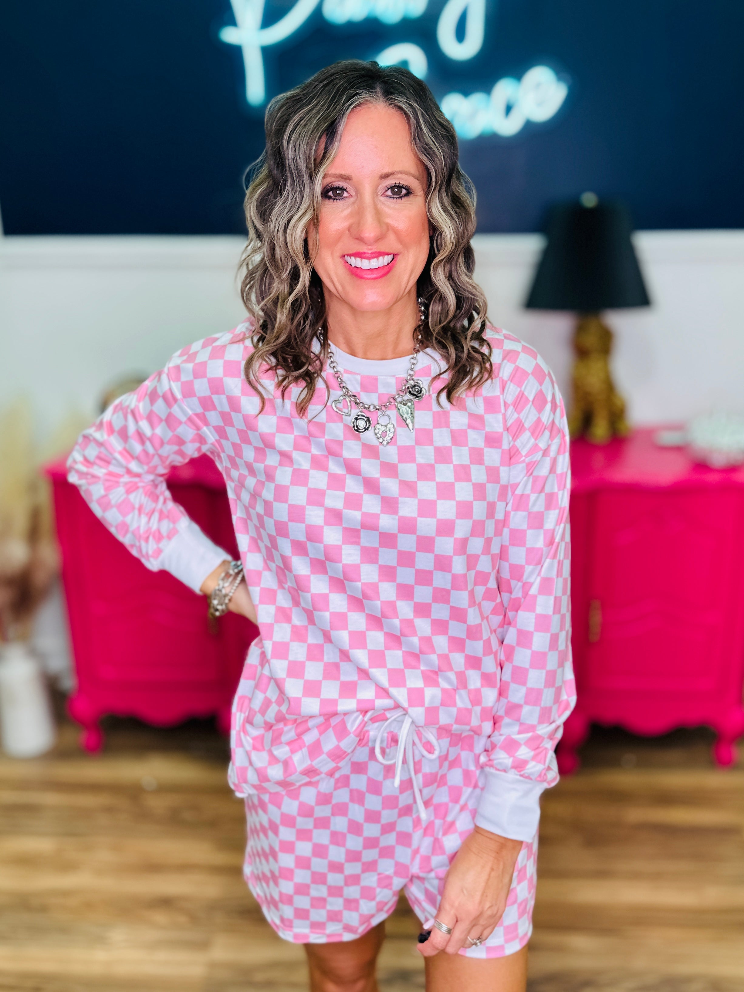 - Pink & White Checkered Print