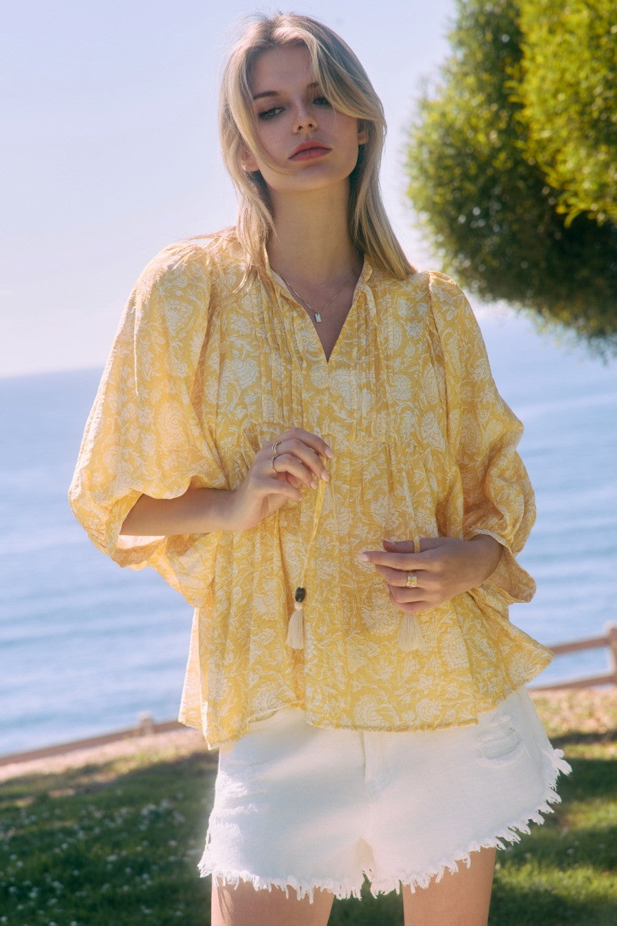 Printed Peasant Top