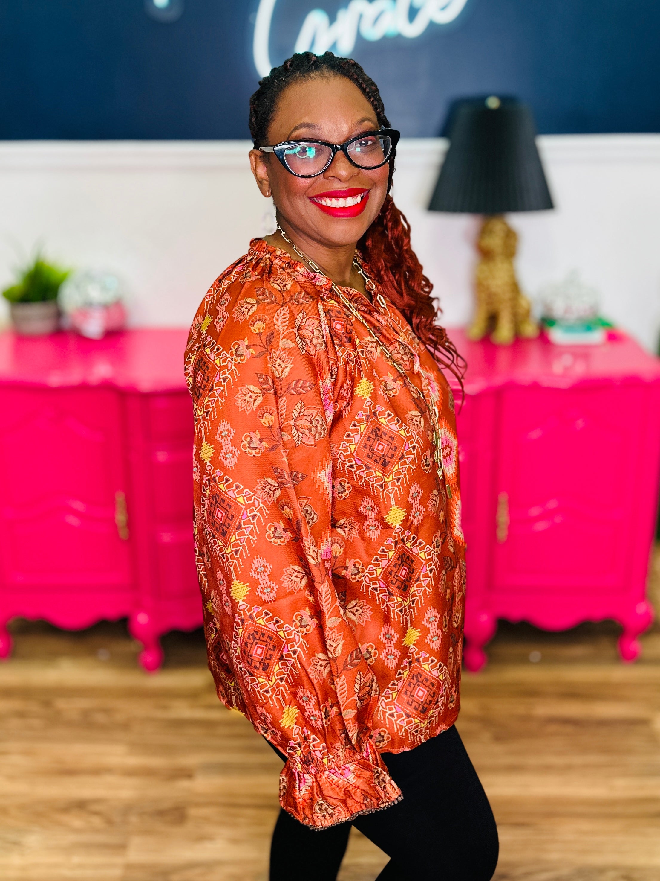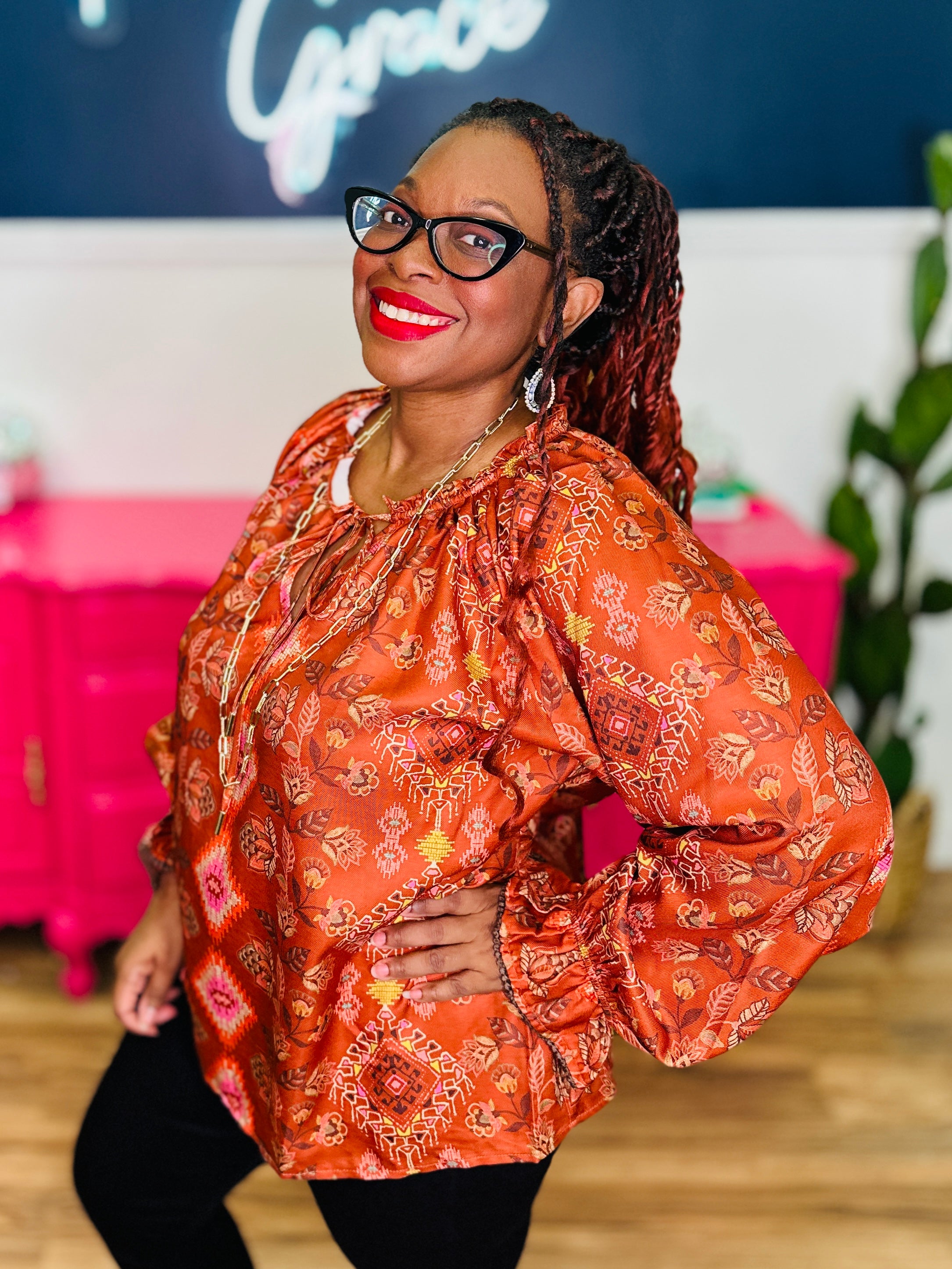 - Terracotta Aztec Print