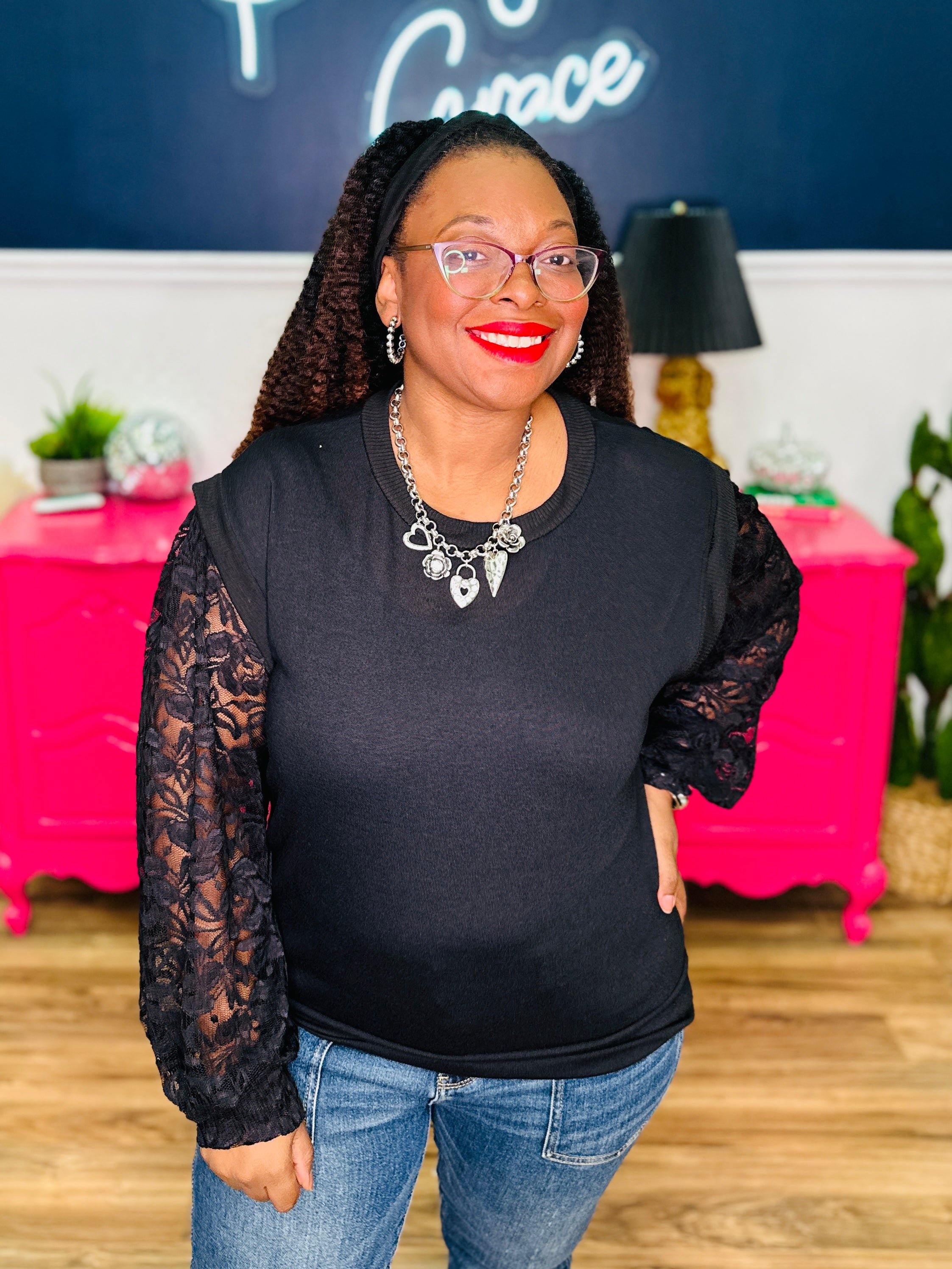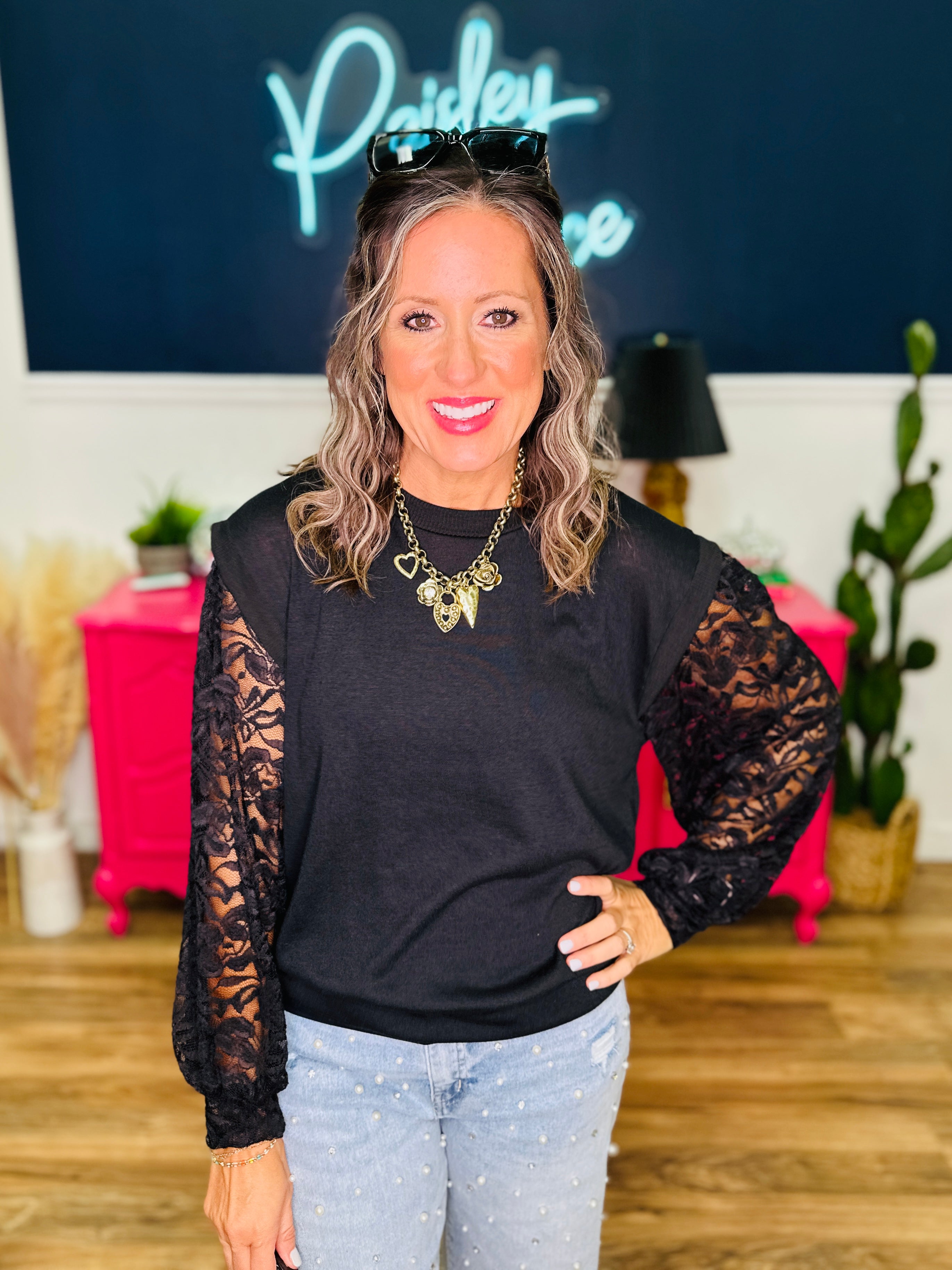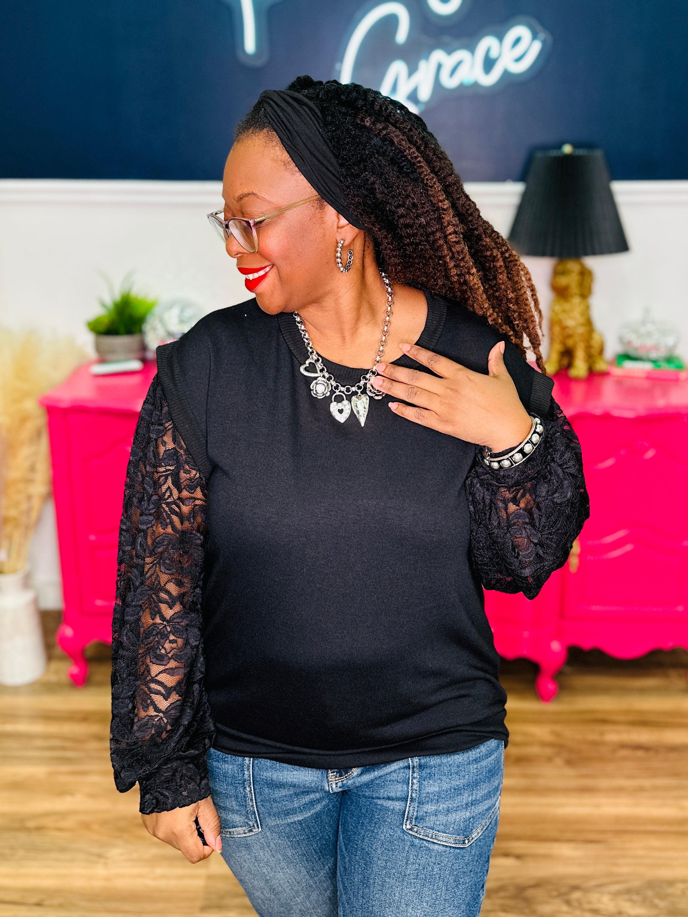 - Knit & Lace Contrast | Has Stretch | Fits True To Size