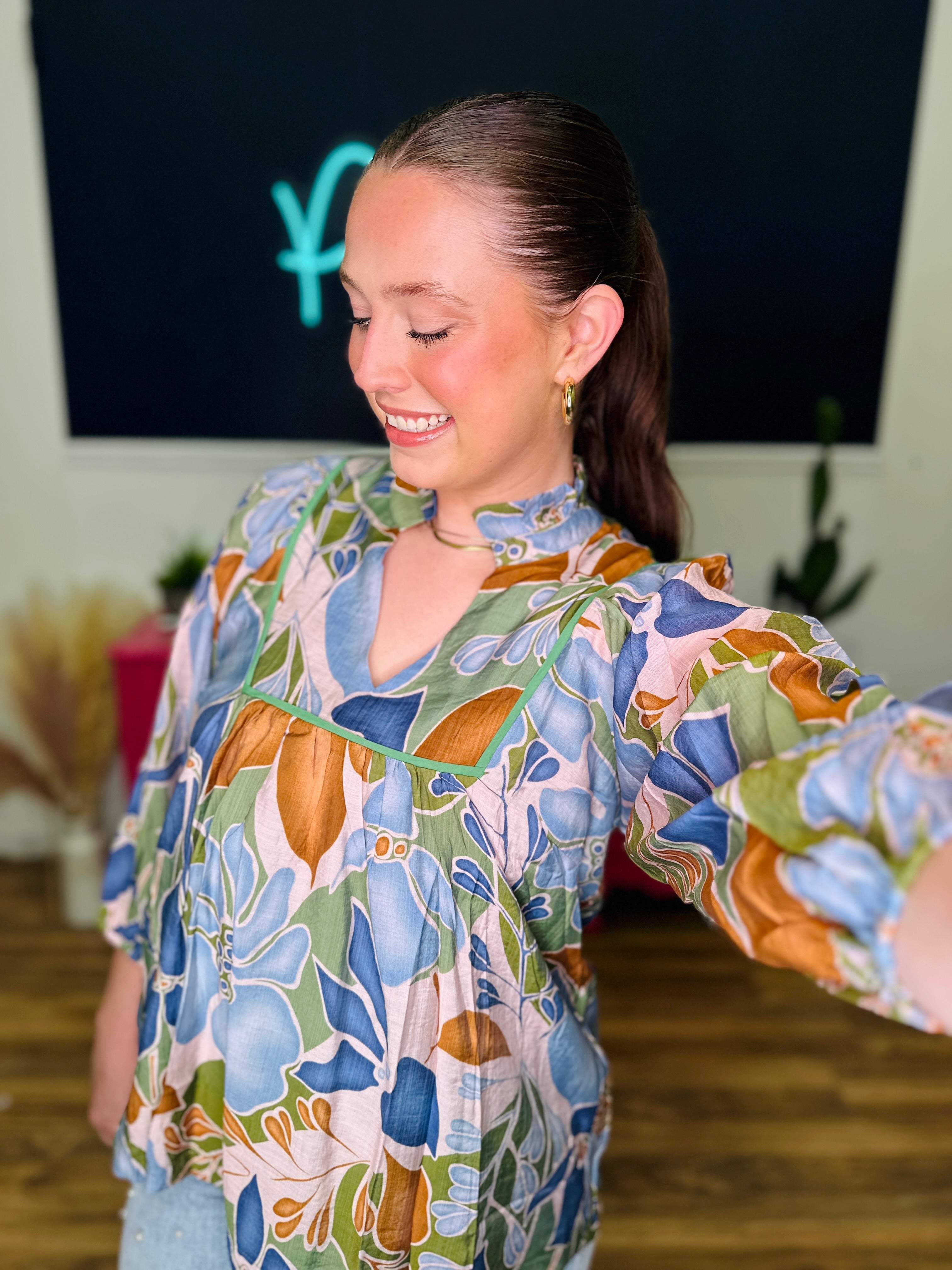 - Ruffle Split V-Neckline | Full-length Balloon Sleeves | Tiered Hemline