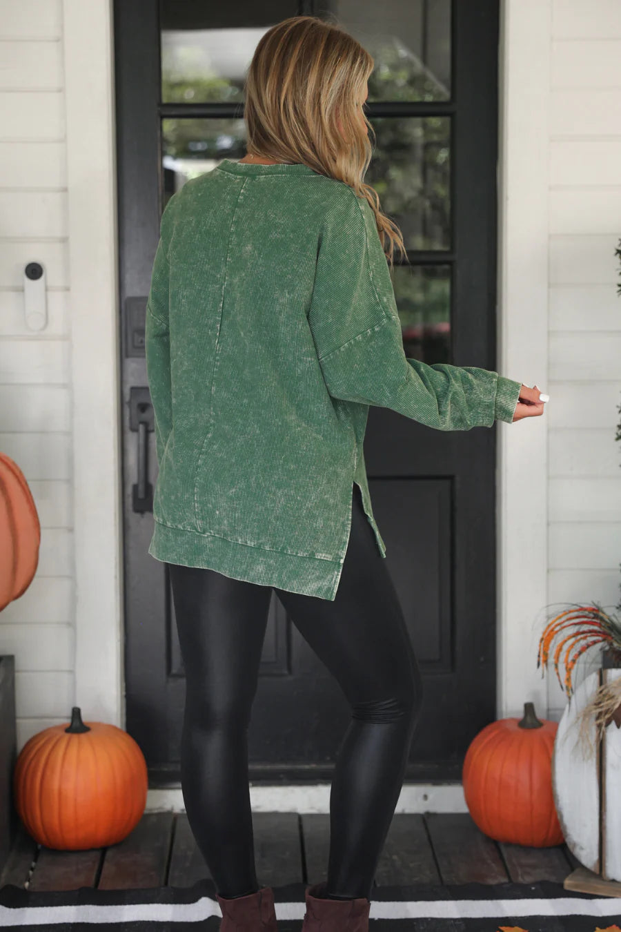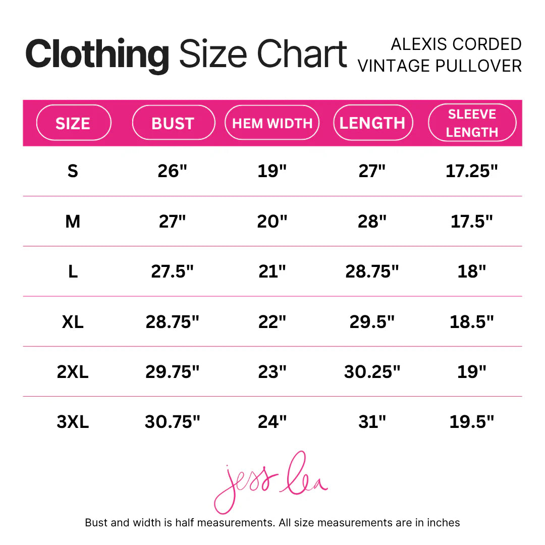Our corded pullovers are back and better than ever! The Alexis Corded Pullover is the perfect comfy and casual piece! You will definitely want to make room in your closet for this one! It features a ribbed texture, crew neck collar, hi-lo style with slits, vintage wash and a relaxed fit. These have endless style possibilities, from monogramming to embroidering to wearing year round!