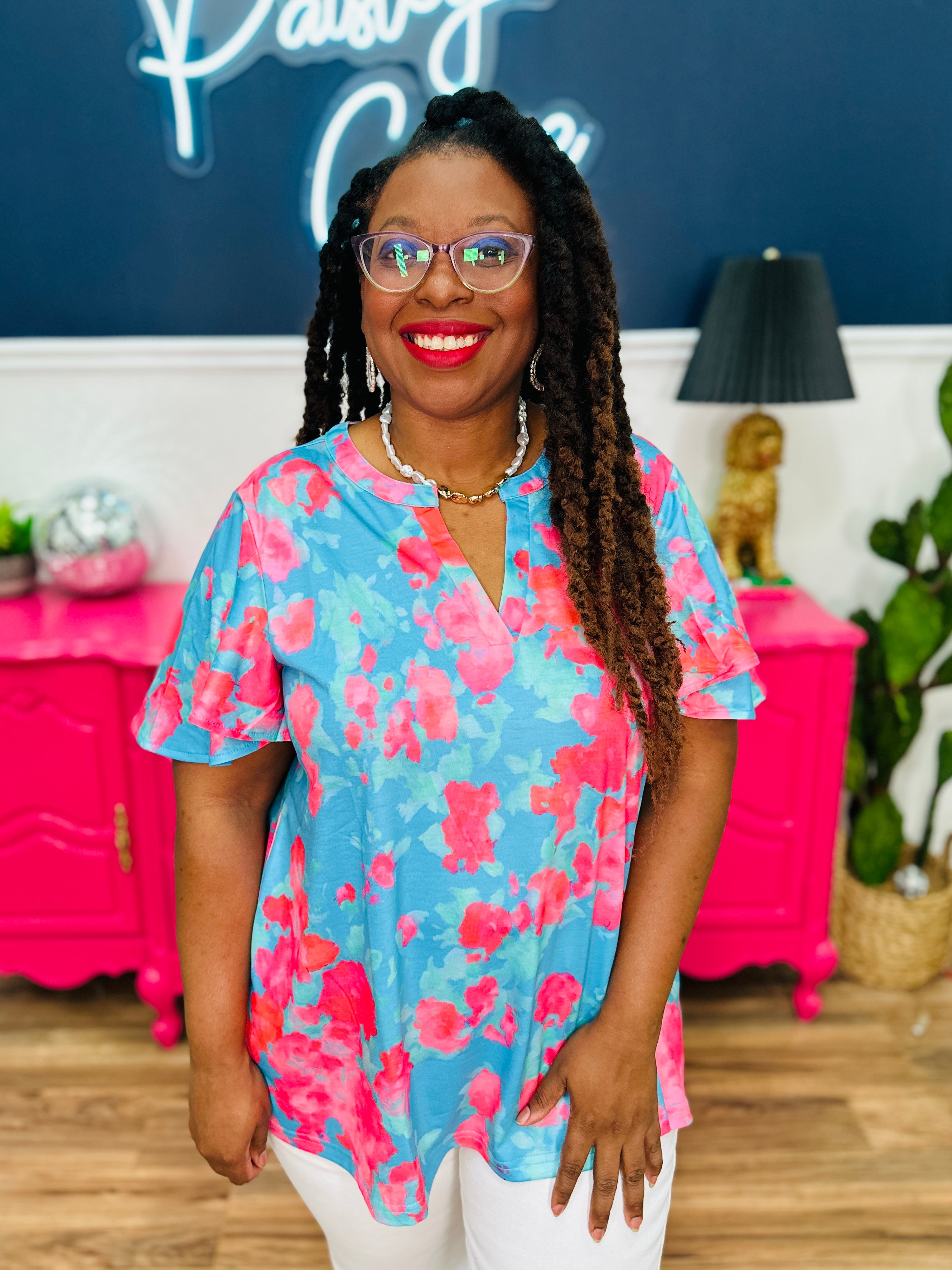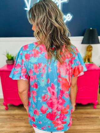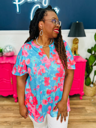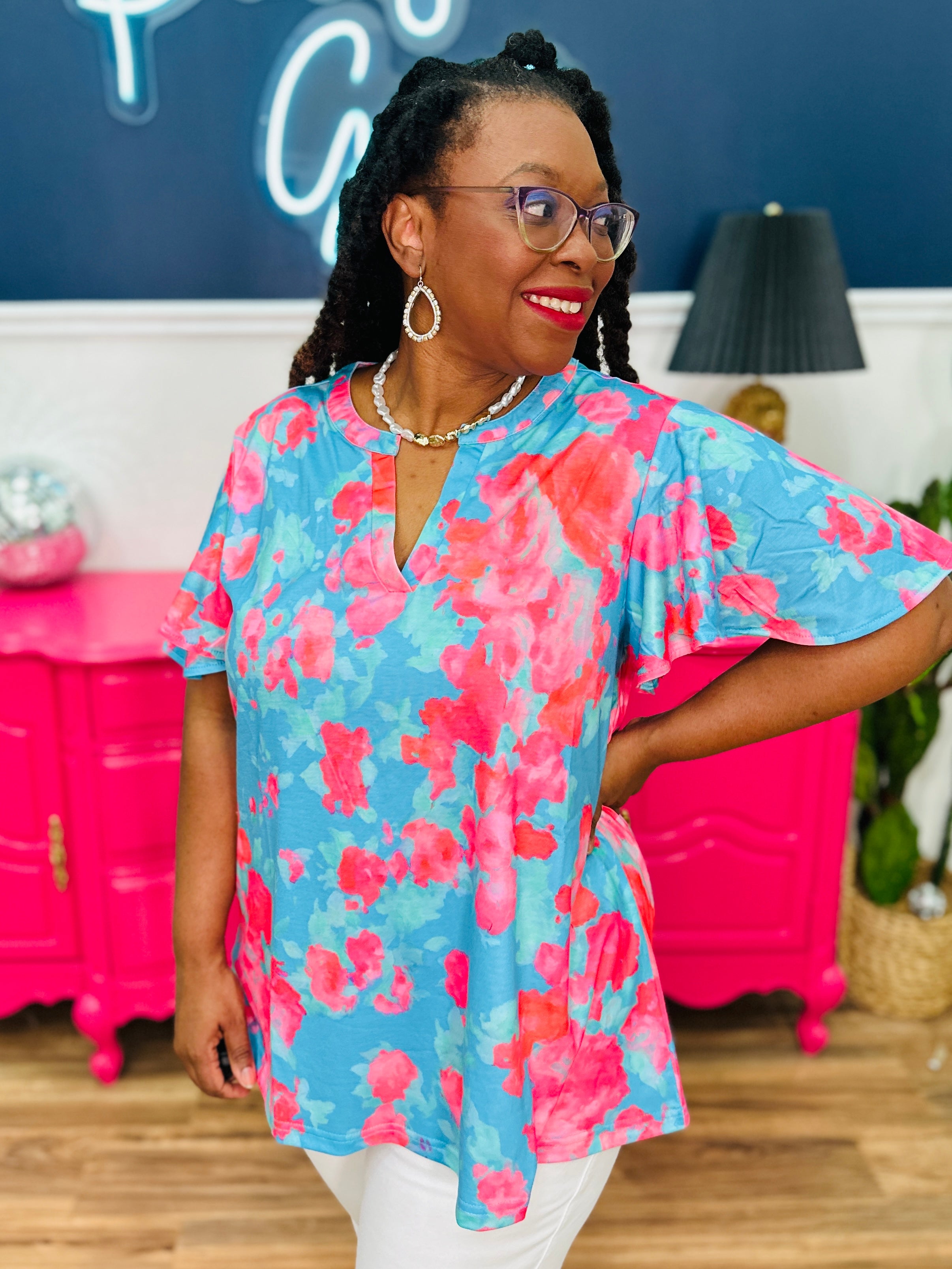 - Split Neckline | Short Flutter Sleeves | Straight Hemline