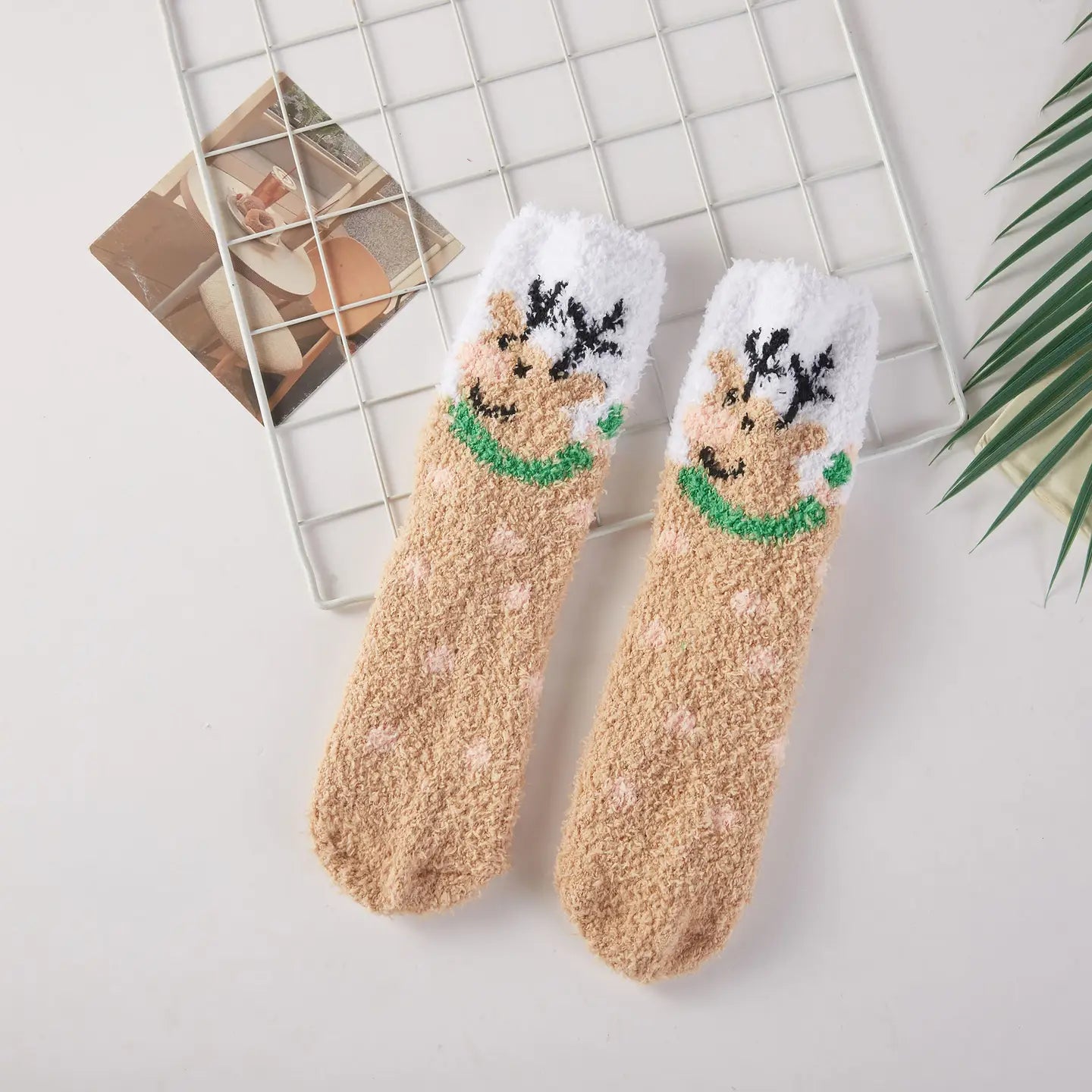 These incredibly soft fuzzy reindeer holiday sleep socks are designed to provide maximum warmth and comfort for a perfect night's rest. Offered in a comfortable one size, they feature cheerful designs ideal for the festive season. Slip into these cozy socks to keep your feet warm and celebrate the holidays in ultimate comfort.