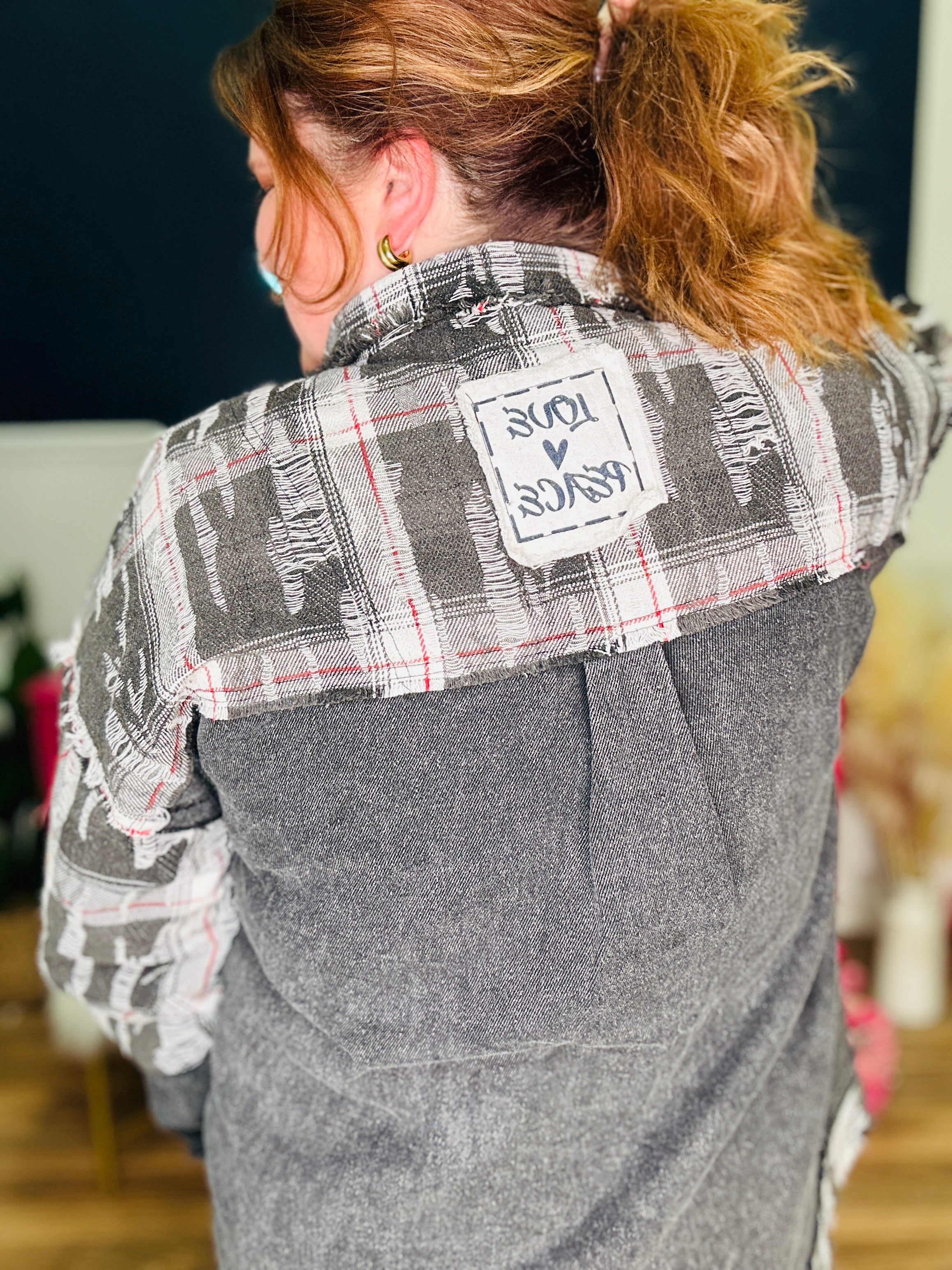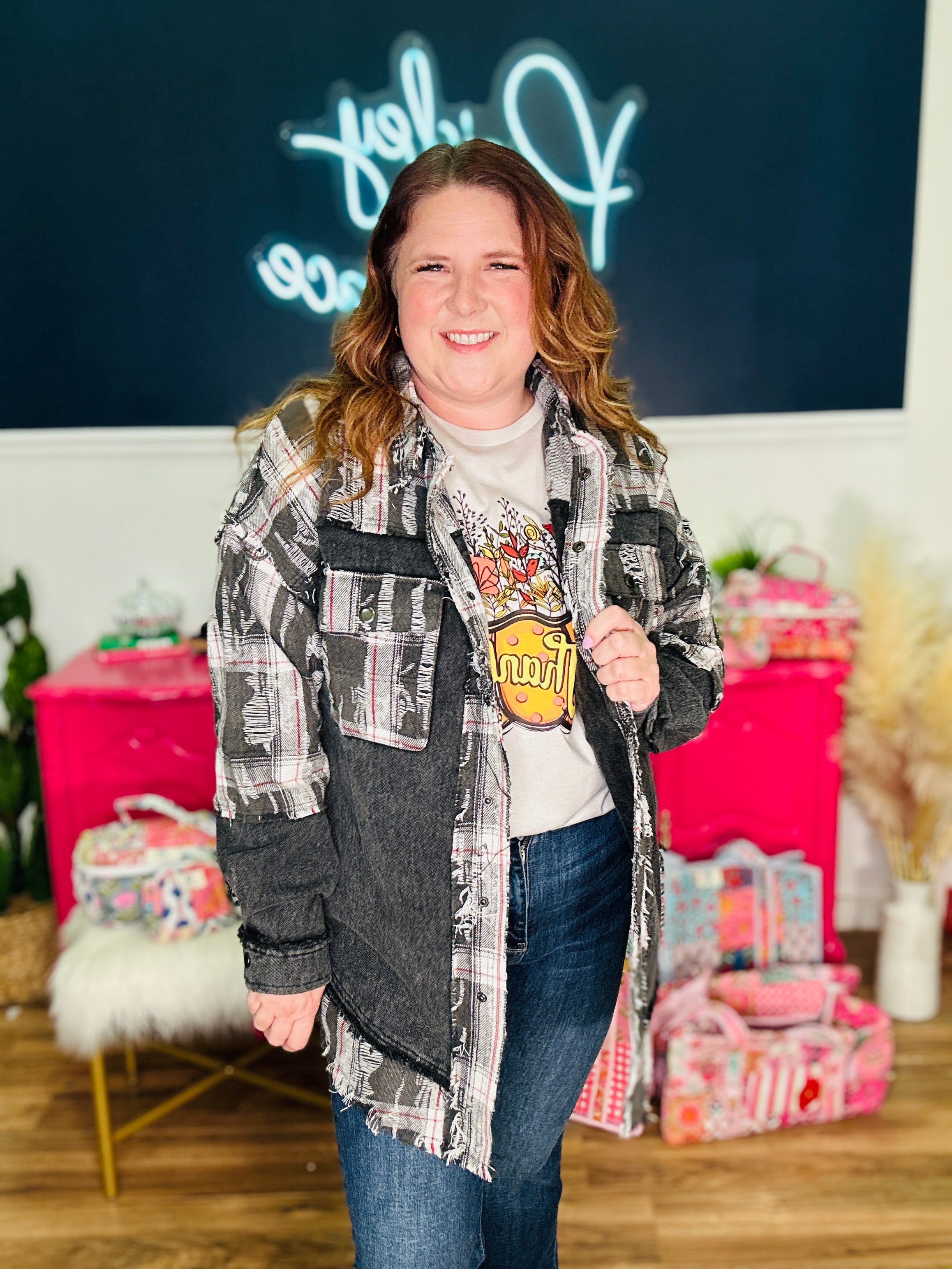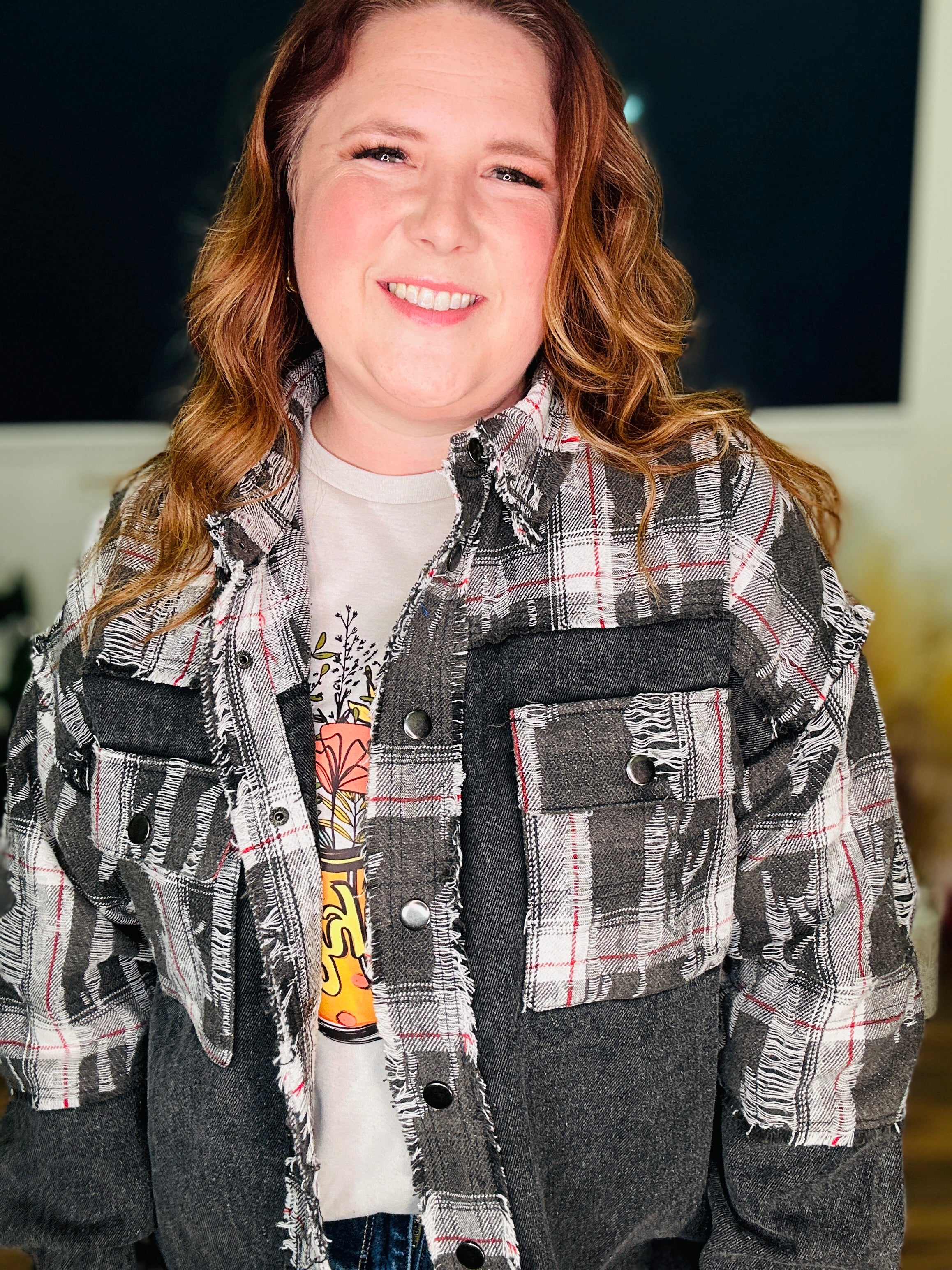 - Collared Neckline | Full-length Sleeves | Frayed Hemline